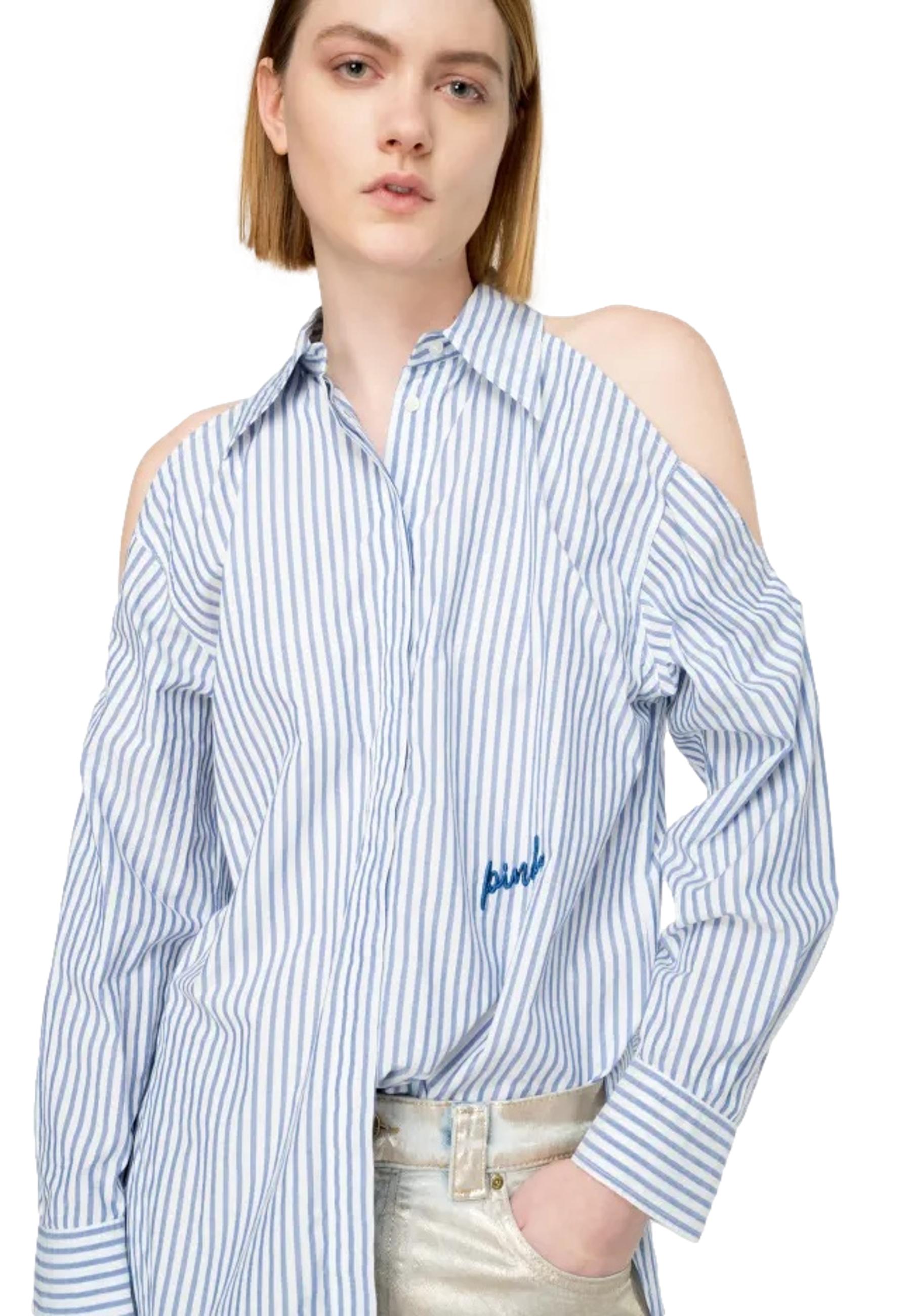 STRIPED SHIRT WITH BARE SHOULDERS PINKO | shirts | 103058 A1OMZE5