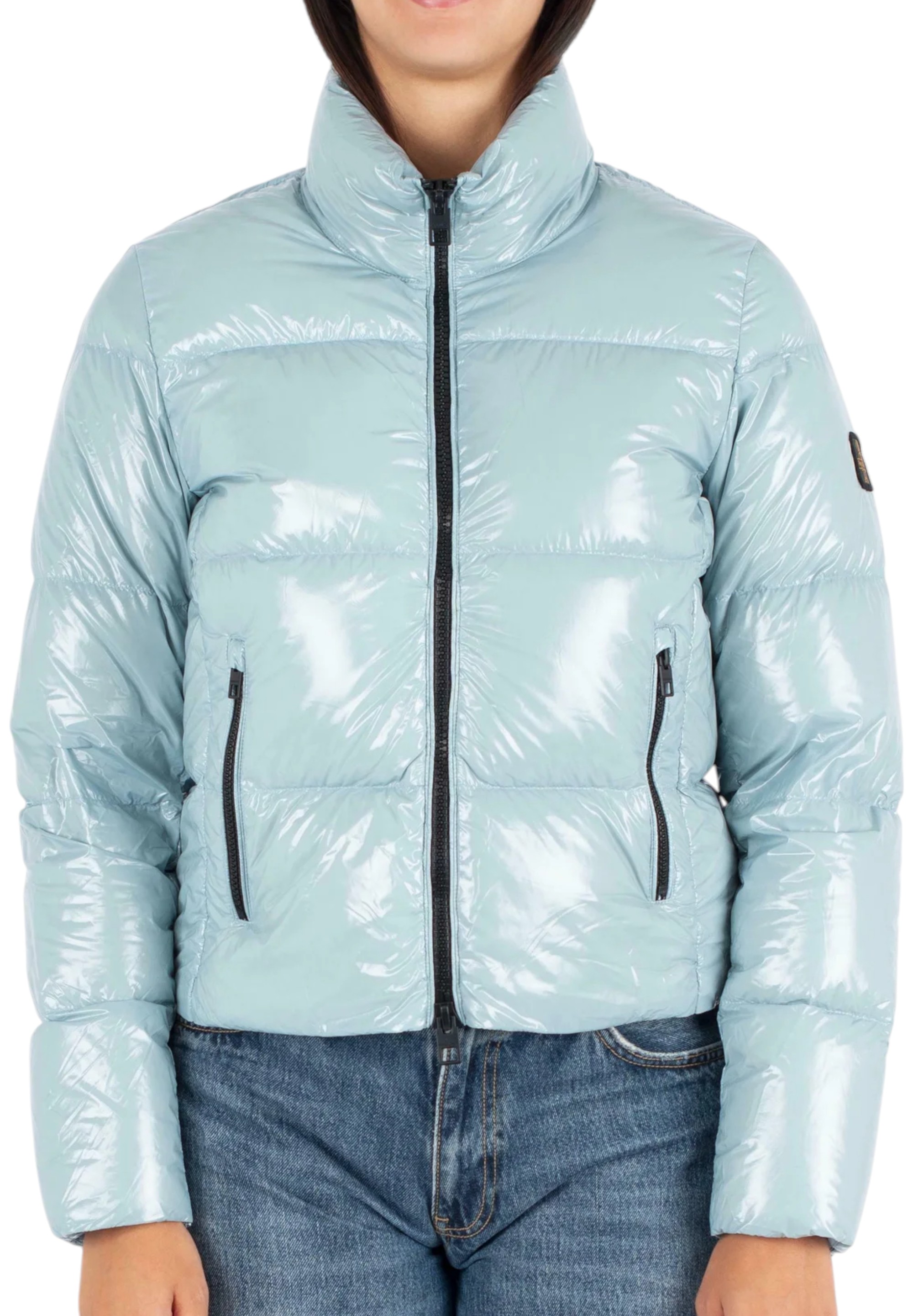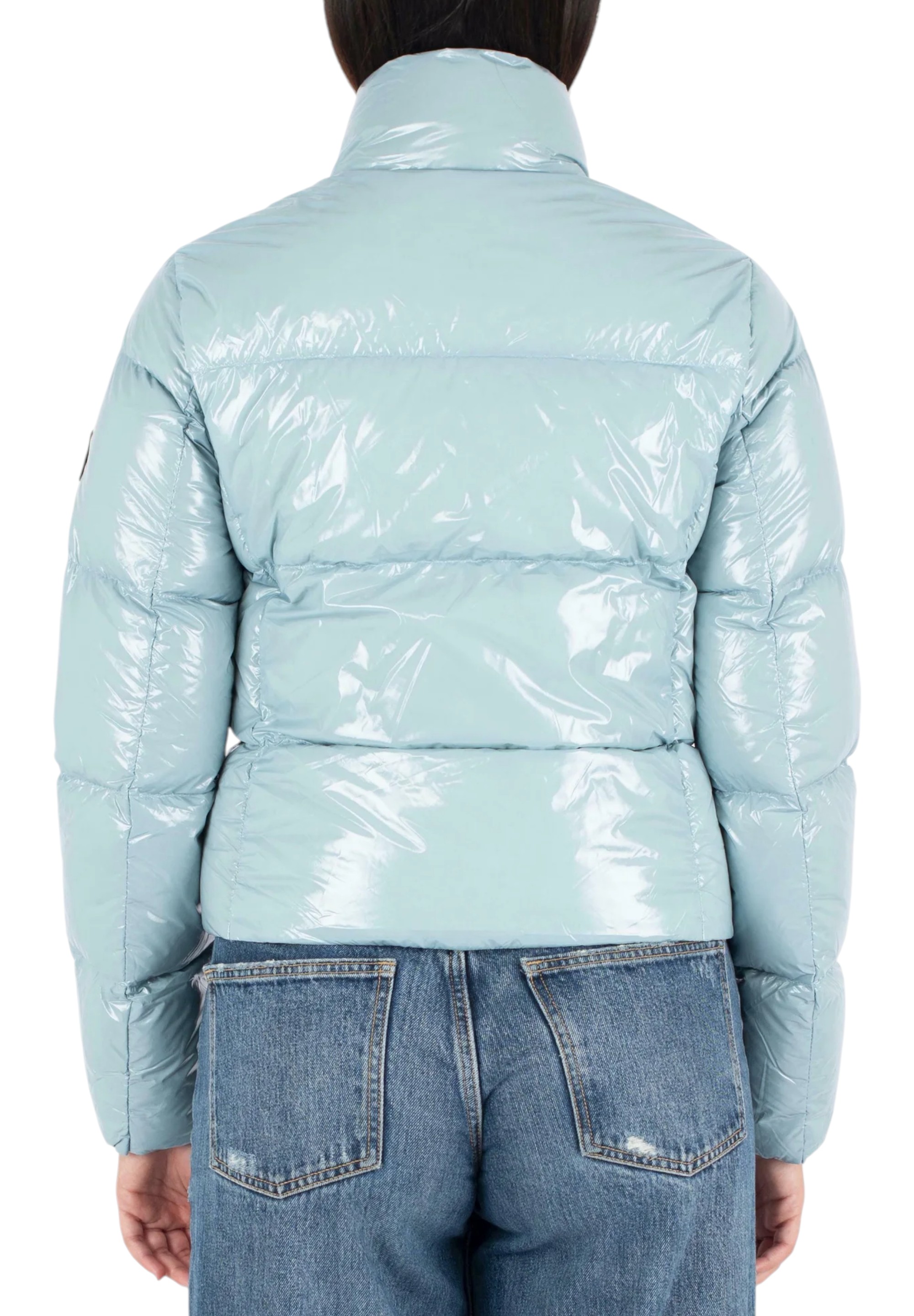 The Ellis Jacket is a short, boldly styled women's winter down jacket designed for those who love a contemporary, clean aesthetic. It has a cropped, slightly slim fit, and the wide horizontal quilting adds volume and character to the look. Made from Vapor Nylon, a Korean nylon with a semi-glossy appearance, it is hand-dyed using a traditional technique that gives each garment a unique soft and fluffy "cloudy" effect. The RDS-certified 90-10 down filling guarantees warmth and lightness, offering high performance during the colder months. The stand-up collar protects from the wind, while the front zip closure and side zip pockets ensure practicality and functionality. Perfect for an urban winter, the Ellis Jacket combines technicality, attention to detail and distinctive style.