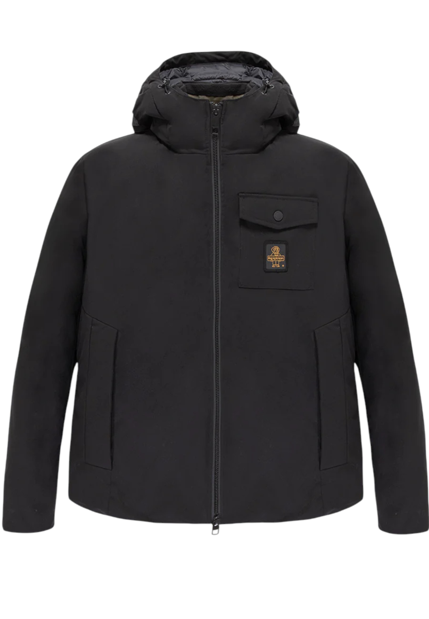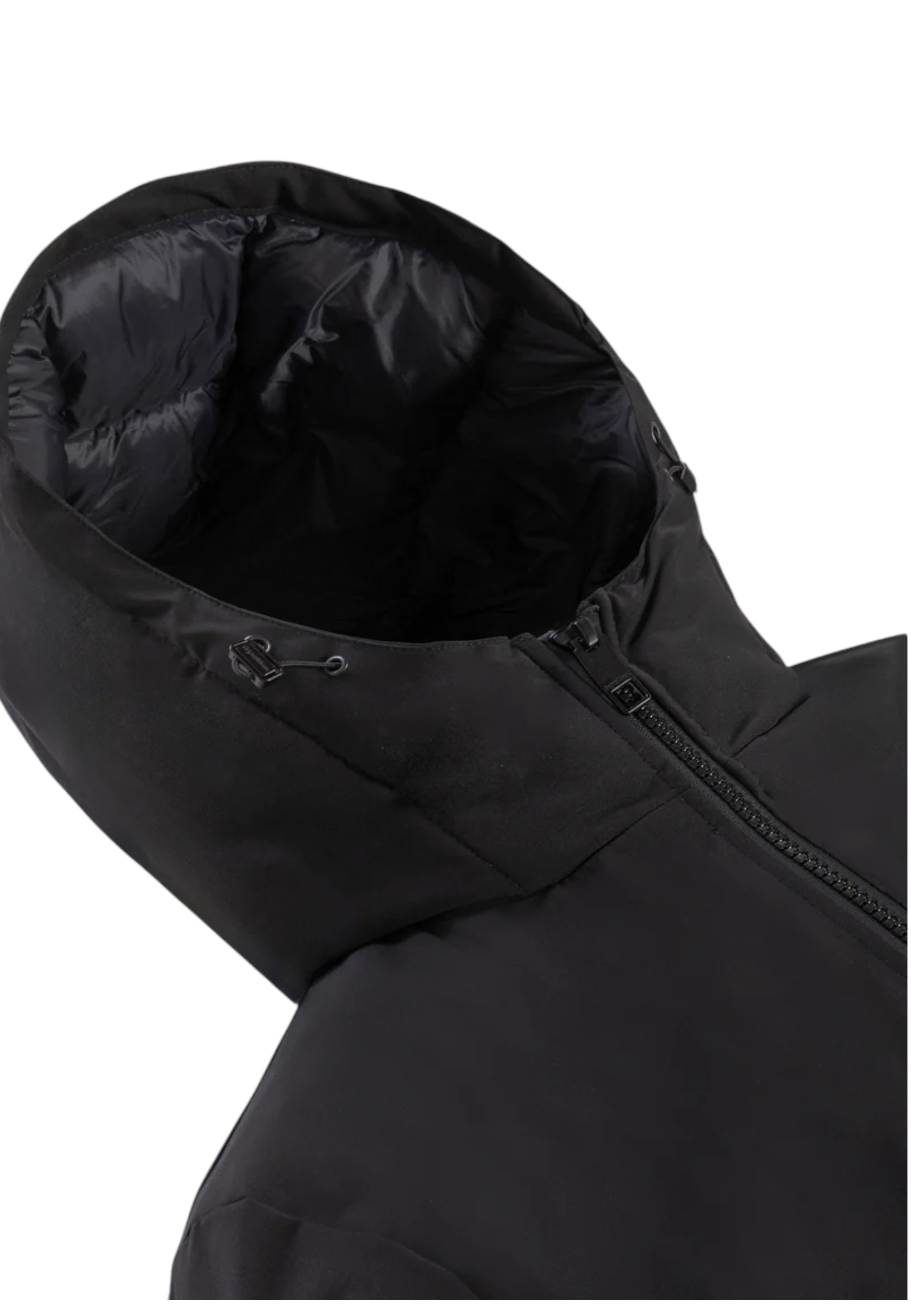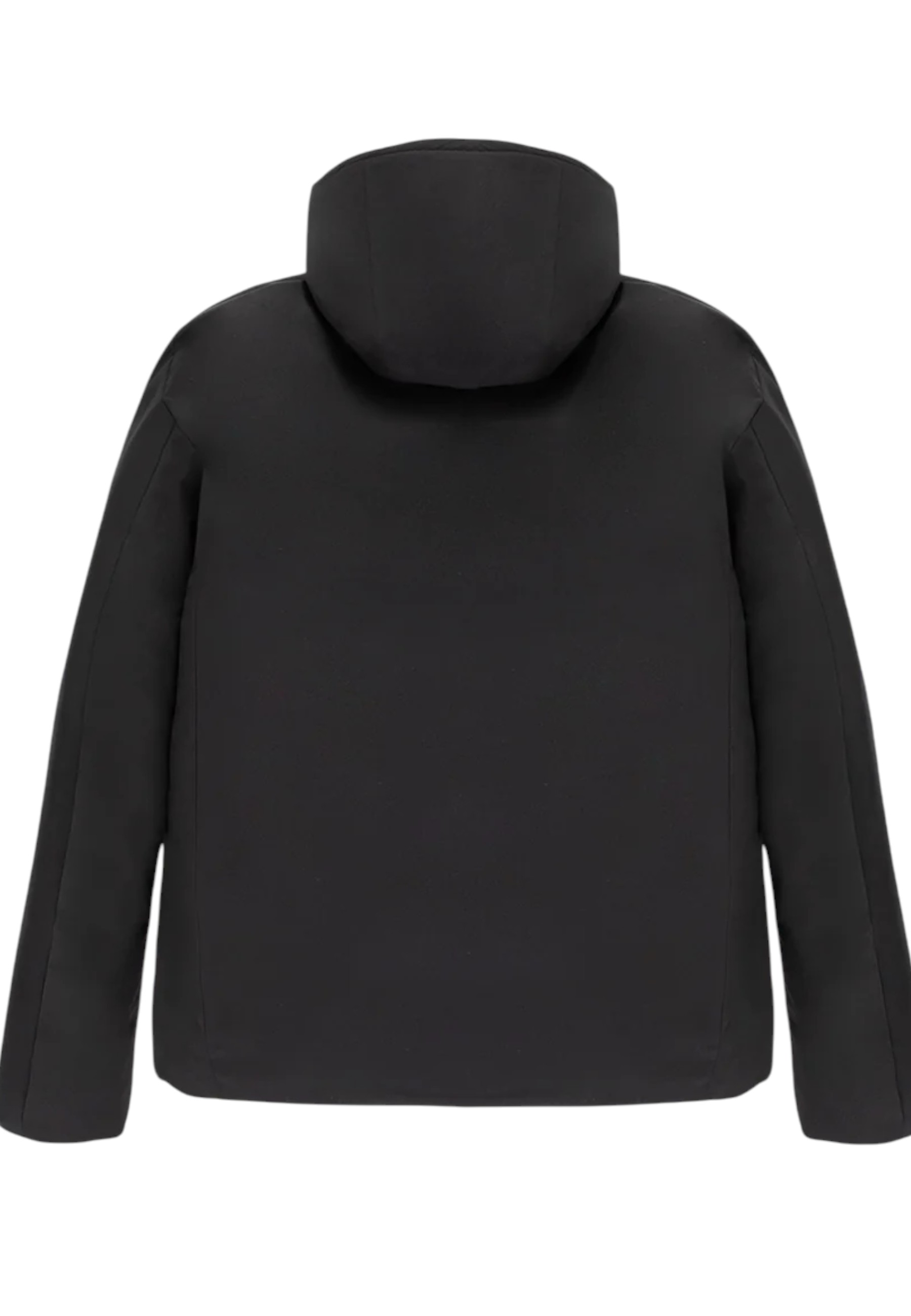 Men's winter jacket with hood, made from soft-shell technical fabric and padded with DuPont? Sorona® eco-down. Extremely comfortable, warm and cosy garment. The fabric guarantees high performance thanks to its windproof and water-repellent outer treatment. The look is modern and clean.