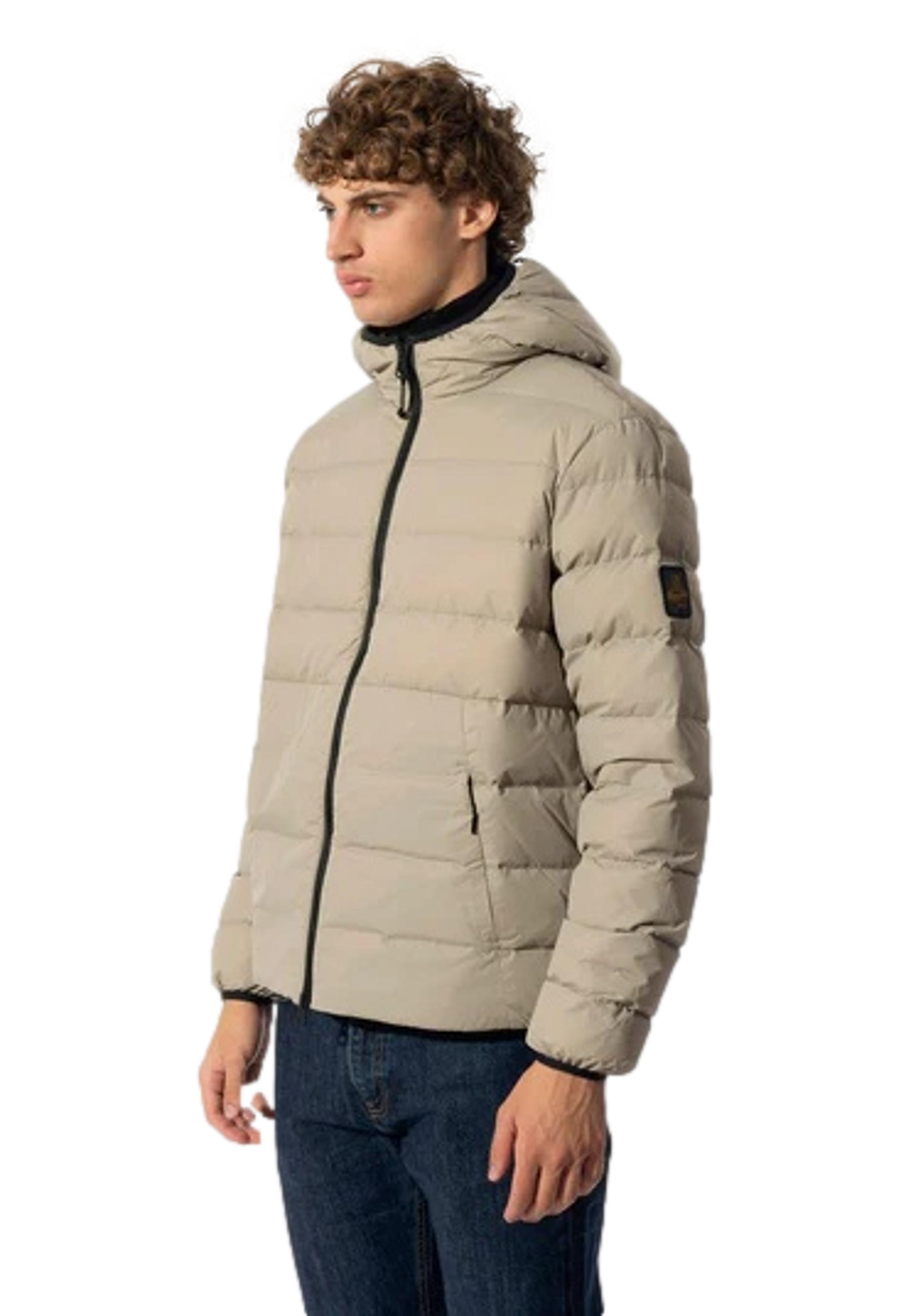 The Keid Jacket is a men's winter down jacket with an up-to-date, streamlined look, perfect for tackling winter in style. Made of 100% nylon outer fabric, with a matt, water-repellent and windproof appearance, it offers excellent protection against the elements. The 100% down filling 85-15, certified RDS (Responsible Down Standard), ensures high protection from the cold and impeccable comfort. Ideal to combine with any outfit, this garment is extremely handy and practical. It features a rain hood and cuffs with elastic Lycra piping for extra grip and resistance to wind and rain. Concealed front pockets with micro-zips and a large inner stash pocket, lined in contrasting iconic RefrigiWear® mesh, add functionality to the design. The double-slider front zip fastening completes the garment, making the Keid Jacket a must-have for your winter wardrobe.
