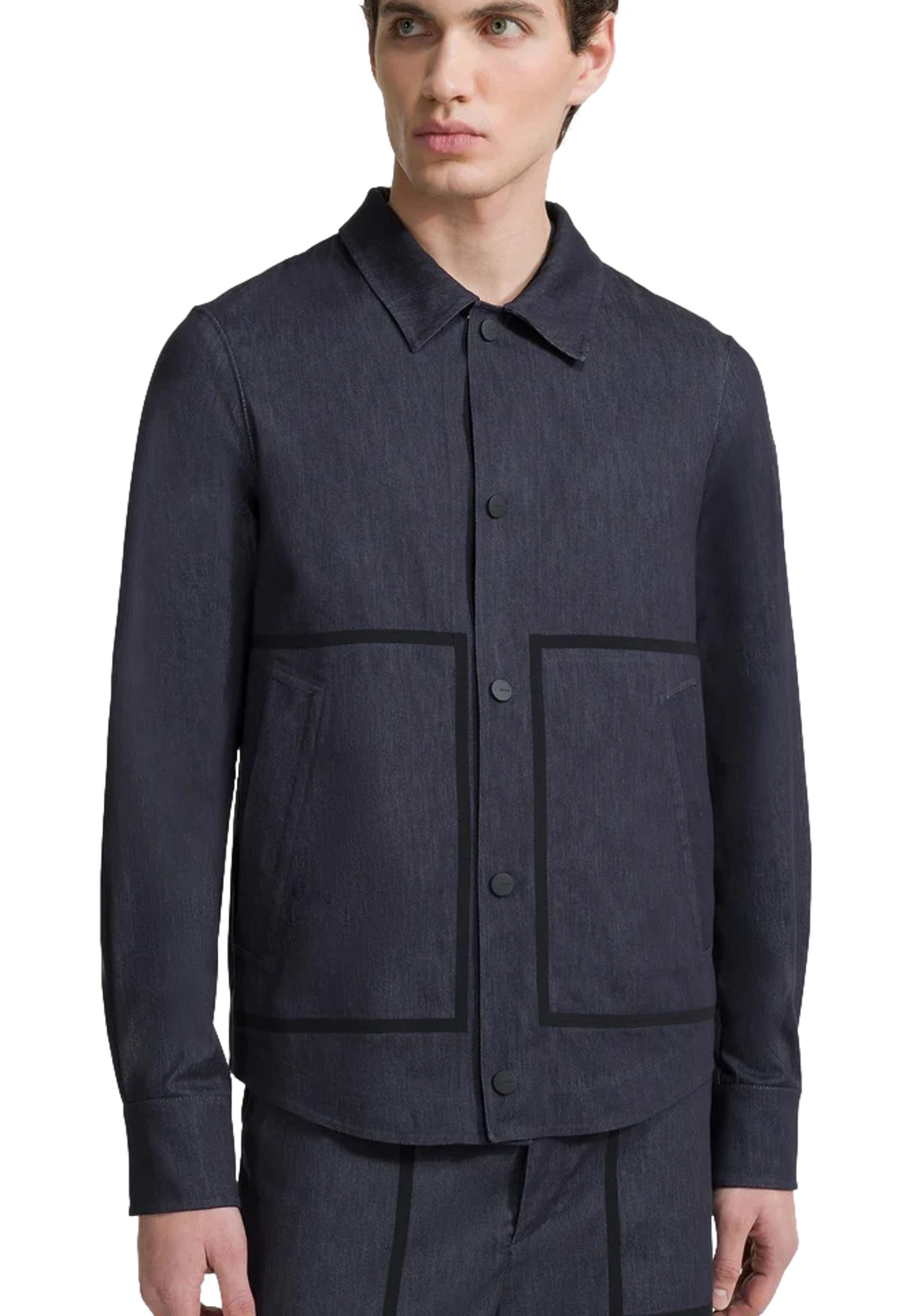 The overshirt is a heralded star of the summer season. Inspired by American navy workwear, the monochrome creation features a shirt collar and fatigue shaping of the two large pockets, outlined by contrasting taping. The front is closed by the soft touch placket, which also adjusts the cuffs. The Marina Overshirt Jkt can be worn closed like a shirt or open like a jacket, over a white T-shirt and khaki cargo pants in constructing an evocative outfit inspired by sailing and adventure.