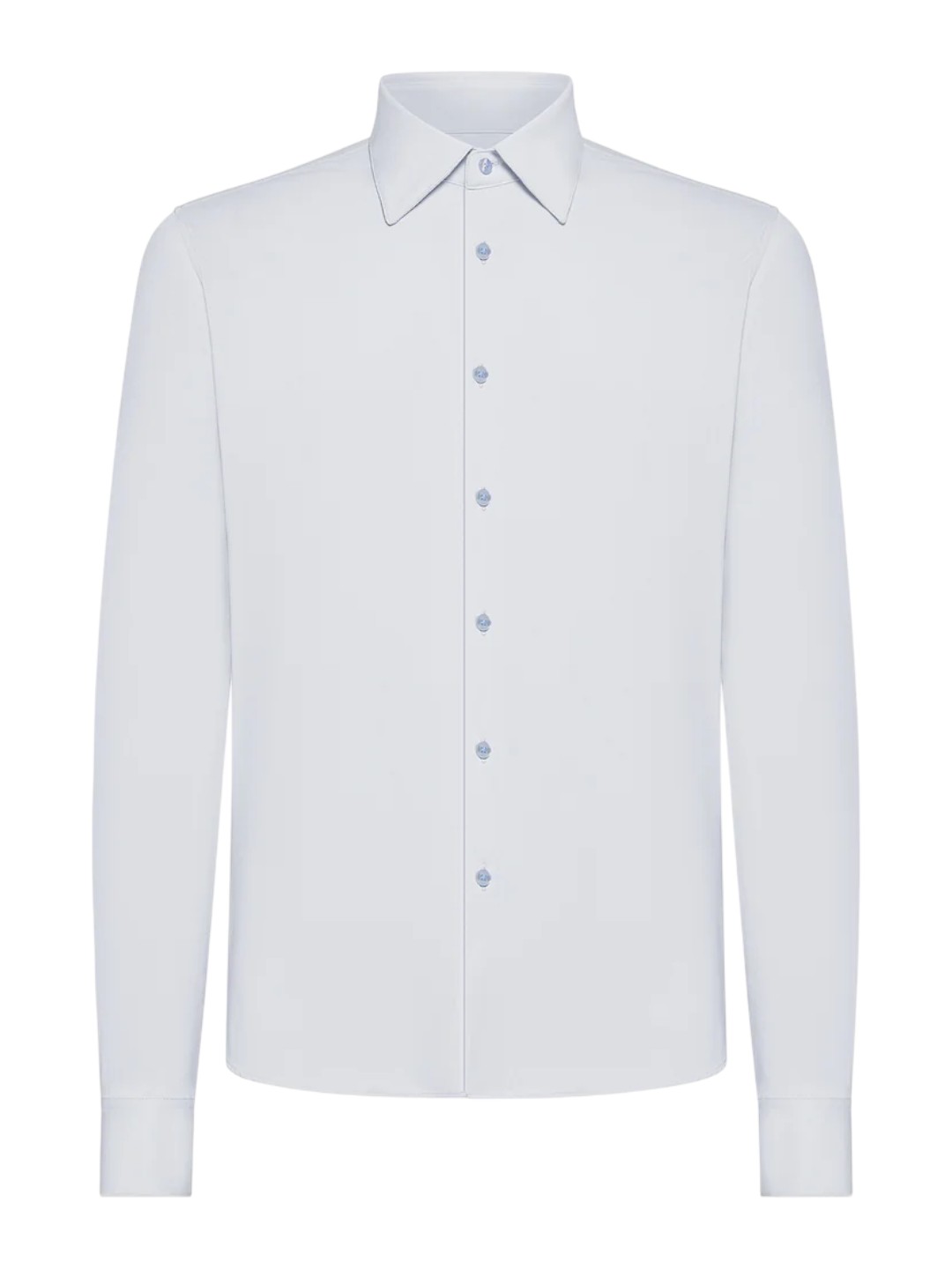 A staple of men's wardrobes and formal wear, this long-sleeved monochrome shirt features a classic, slim fit in timeless shades of ice white and light blue, as well as seasonal dark tones. The finesse of the stretch Oxford fabric, lightweight and breathable, is particularly pleasing to the touch. This piece features a regular collar and a center French closure with elegant mother-of-pearl buttons, which also adjust the cuffs. Its comfort is complemented by its crease-resistant, easy-care, and non-iron properties, making the Oxford Shirt a garment of impeccable elegance, whether you're working long hours at the office or traveling.