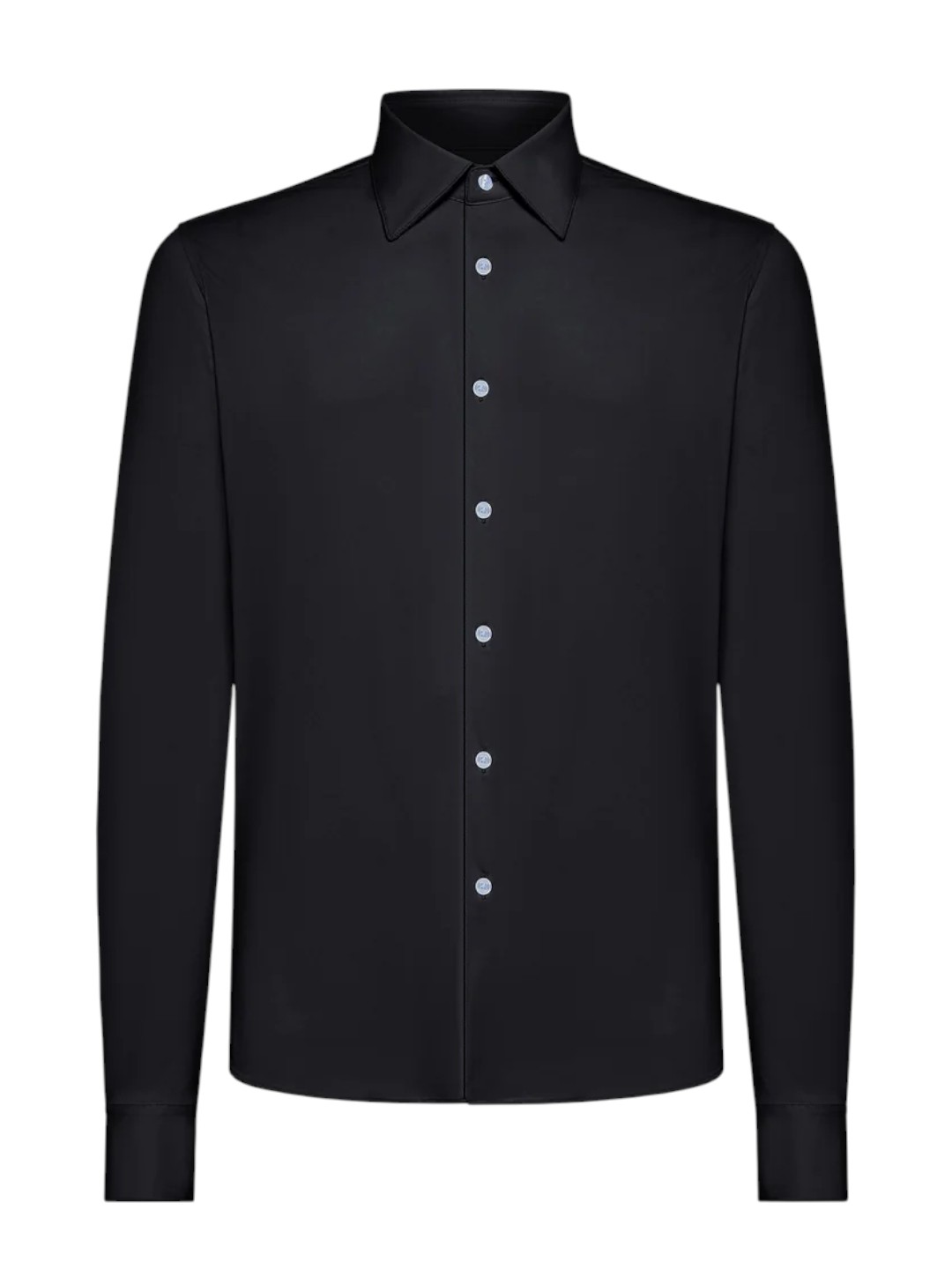 A staple of men's wardrobes and formal wear, this long-sleeved monochrome shirt features a classic, slim fit in timeless shades of ice white and light blue, as well as seasonal dark tones. The finesse of the stretch Oxford fabric, lightweight and breathable, is particularly pleasing to the touch. This piece features a regular collar and a center French closure with elegant mother-of-pearl buttons, which also adjust the cuffs. Its comfort is complemented by its crease-resistant, easy-care, and non-iron properties, making the Oxford Shirt a garment of impeccable elegance, whether you're working long hours at the office or traveling.