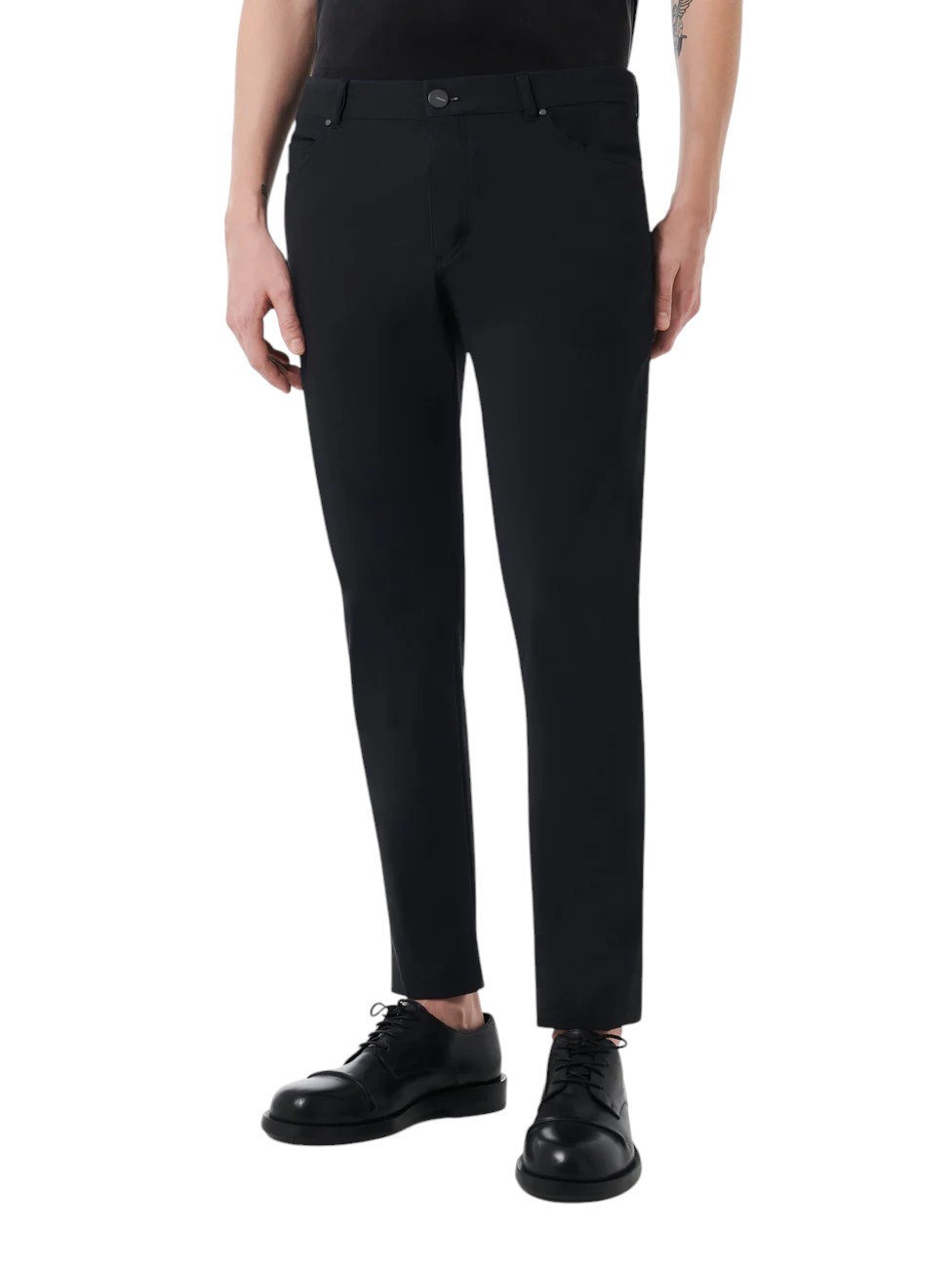The five-pocket trousers find a new contemporaneity in the extreme lightness of the cool, stretch Surflex®. The sophisticated matt finish of the fabric avoids transparencies in light and medium-dark tones. The regular fit is emphasised by the comfort of the breathable, crease-resistant and easy-care fabric with its pleasantly soft touch. American-style pockets and a watch pocket with dark metal rivets design the front, closed by the fine horn placket discreetly concealed by the flap. The traditional back patch pockets are embellished with the black jacron, the iconic note that completes a model that is ideal in the creation of different casual looks for the warm season.