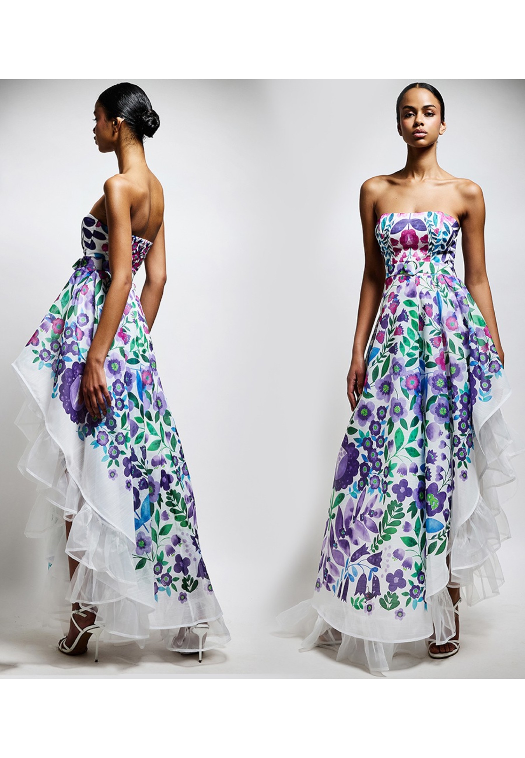 The strapless design emphasises the shoulders, while the asymmetrical cut of the hemline lends originality and contemporary style. A versatile and striking garment, designed for those who love to feel unique.
