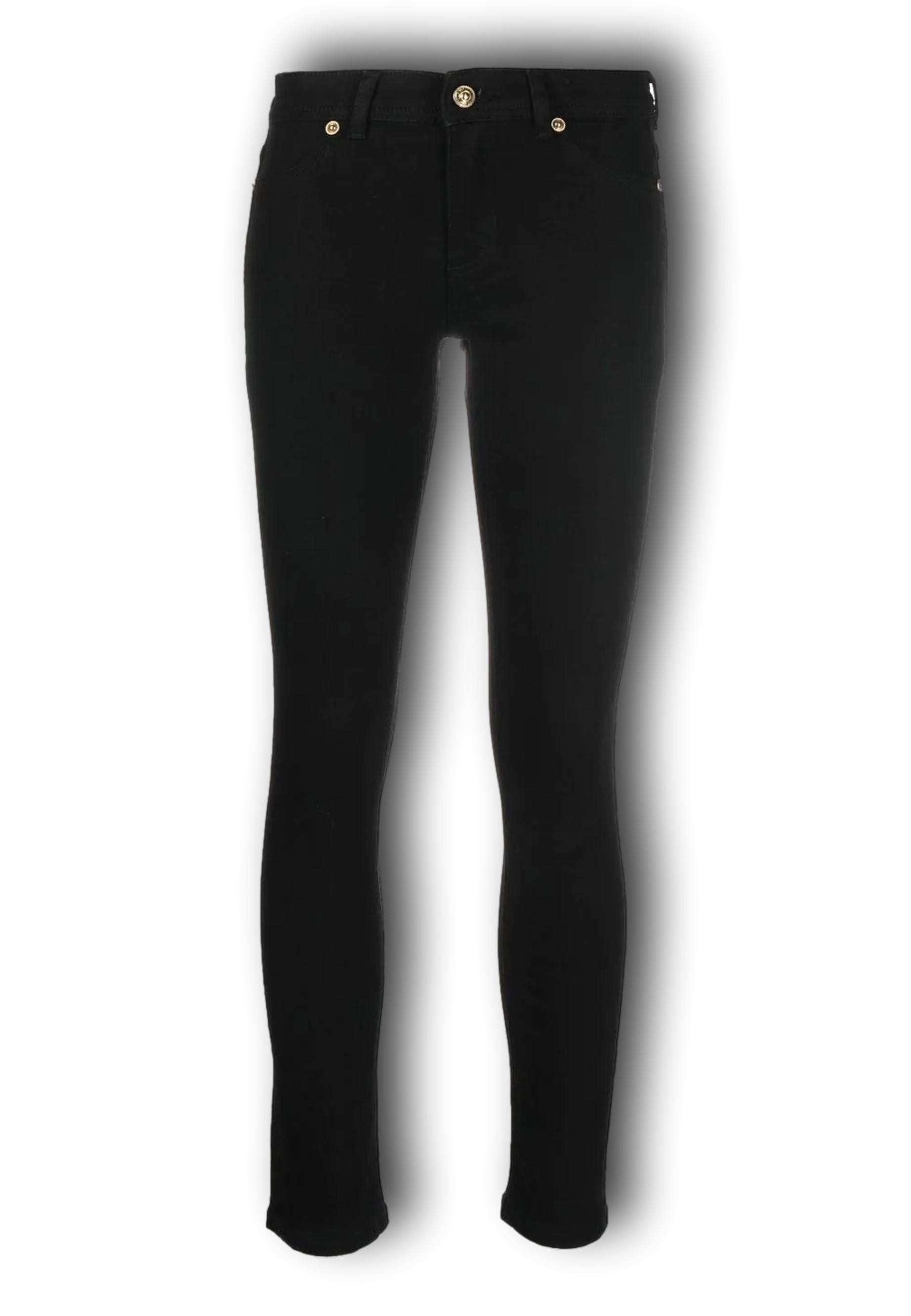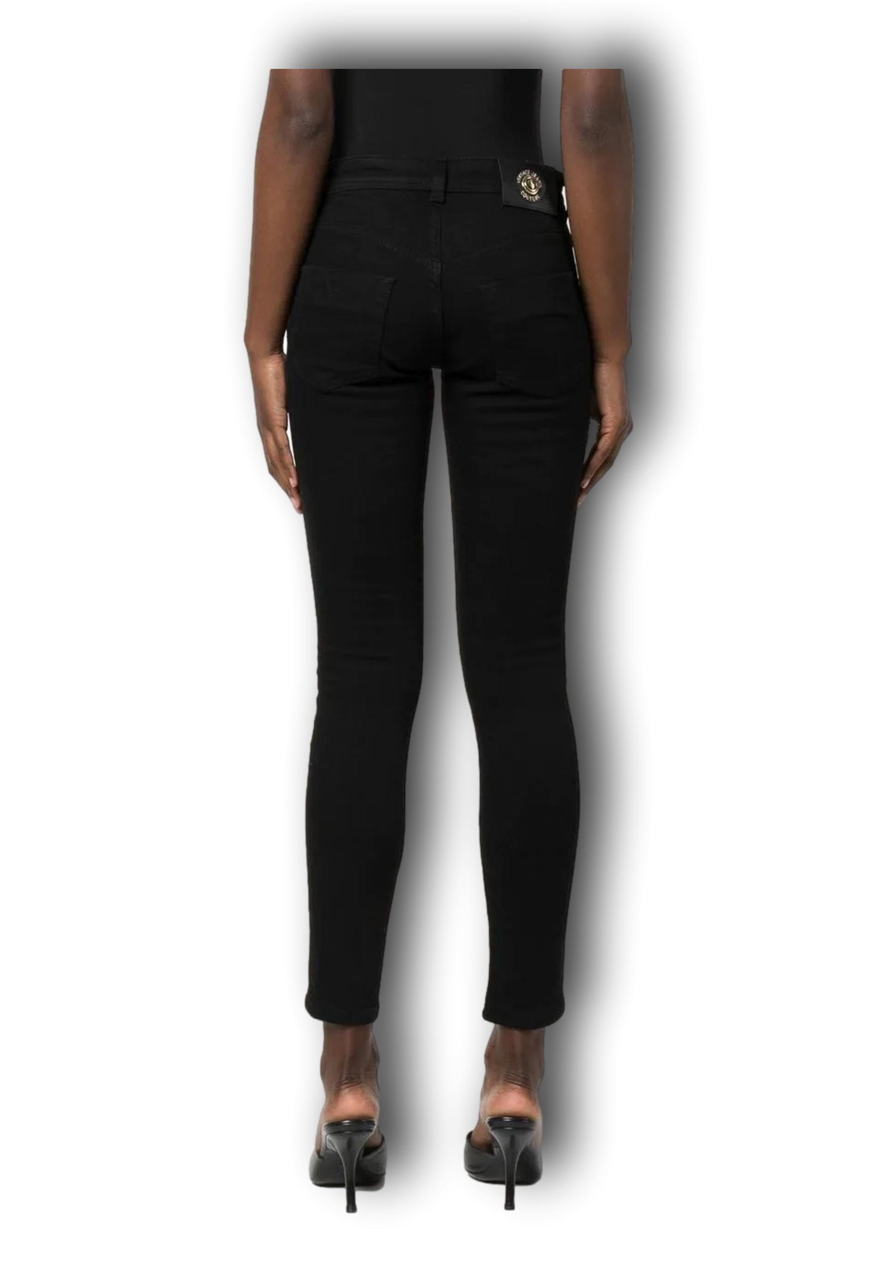 Narrow-leg trousers from VERSACE JEANS COUTURE featuring a low rise, a front button and zip fastening, a classic five pocket design, a black colour, stretch cotton, a skinny cut and belt loops.