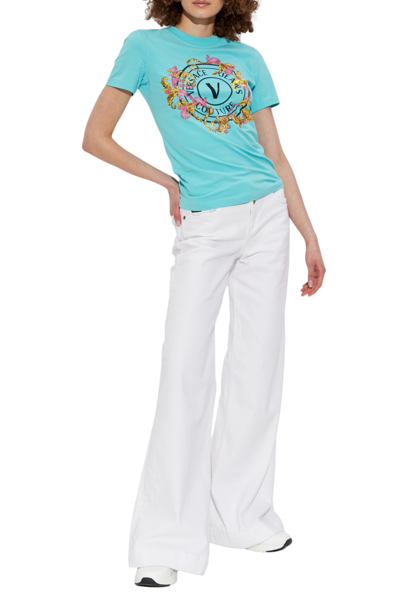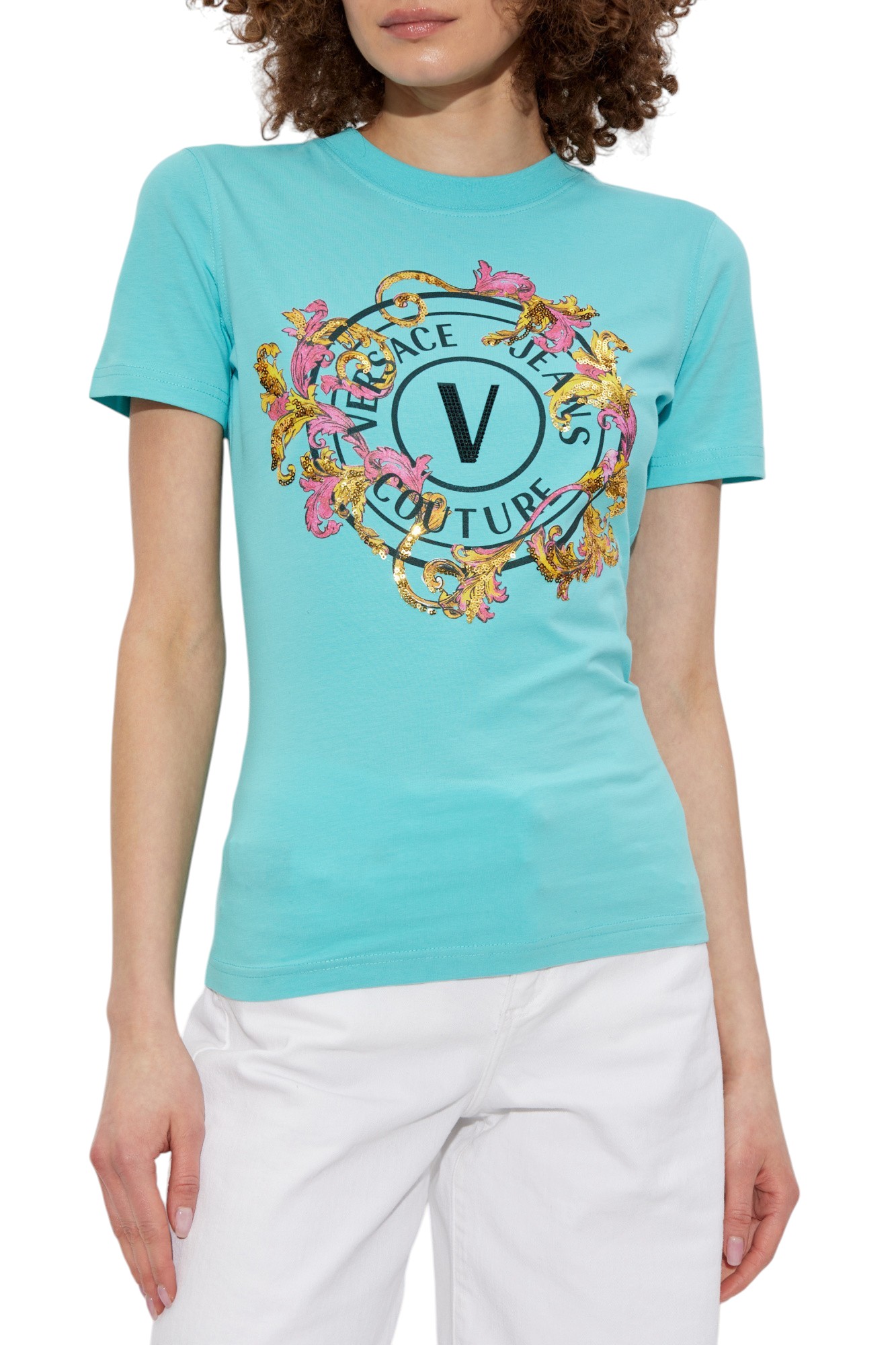 T-shirt with crystals Outline Barocco VERSACE JEANS COUTURE | T-shirt | 78HAHC01 CJ02C239