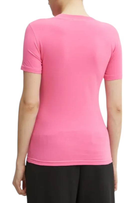 This T-shirt is not just a piece of clothing, but a statement of avant-garde thinking, perfect when teamed with sparkling pink shorts and a jacket for a complete, sophisticated look.
