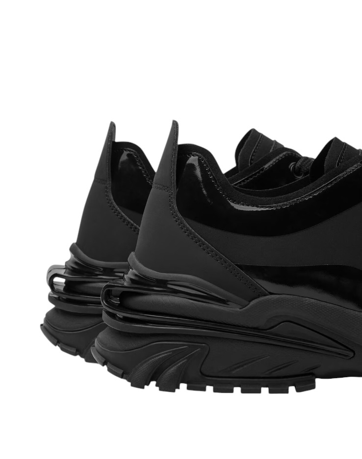 The low-top, lace-up Trailtreck sneakers feature rubber treads, a technical fabric finish on the upper with patent leather inserts, and an Institutional Logo motif on the side.