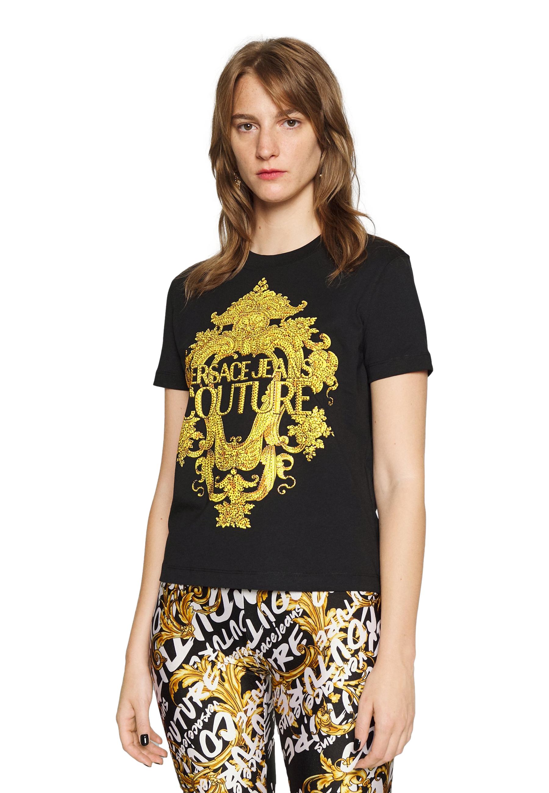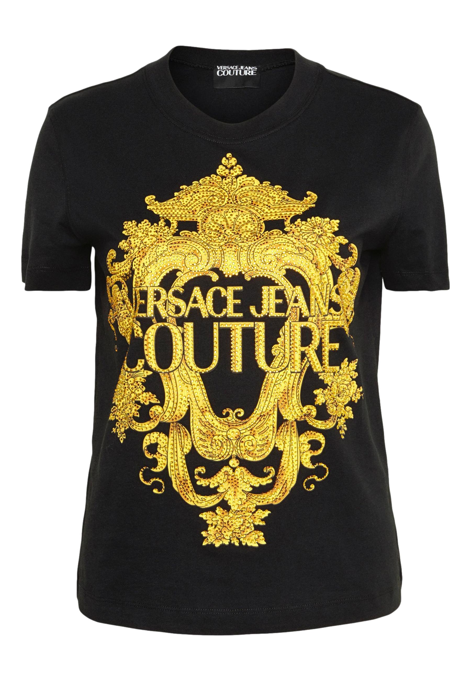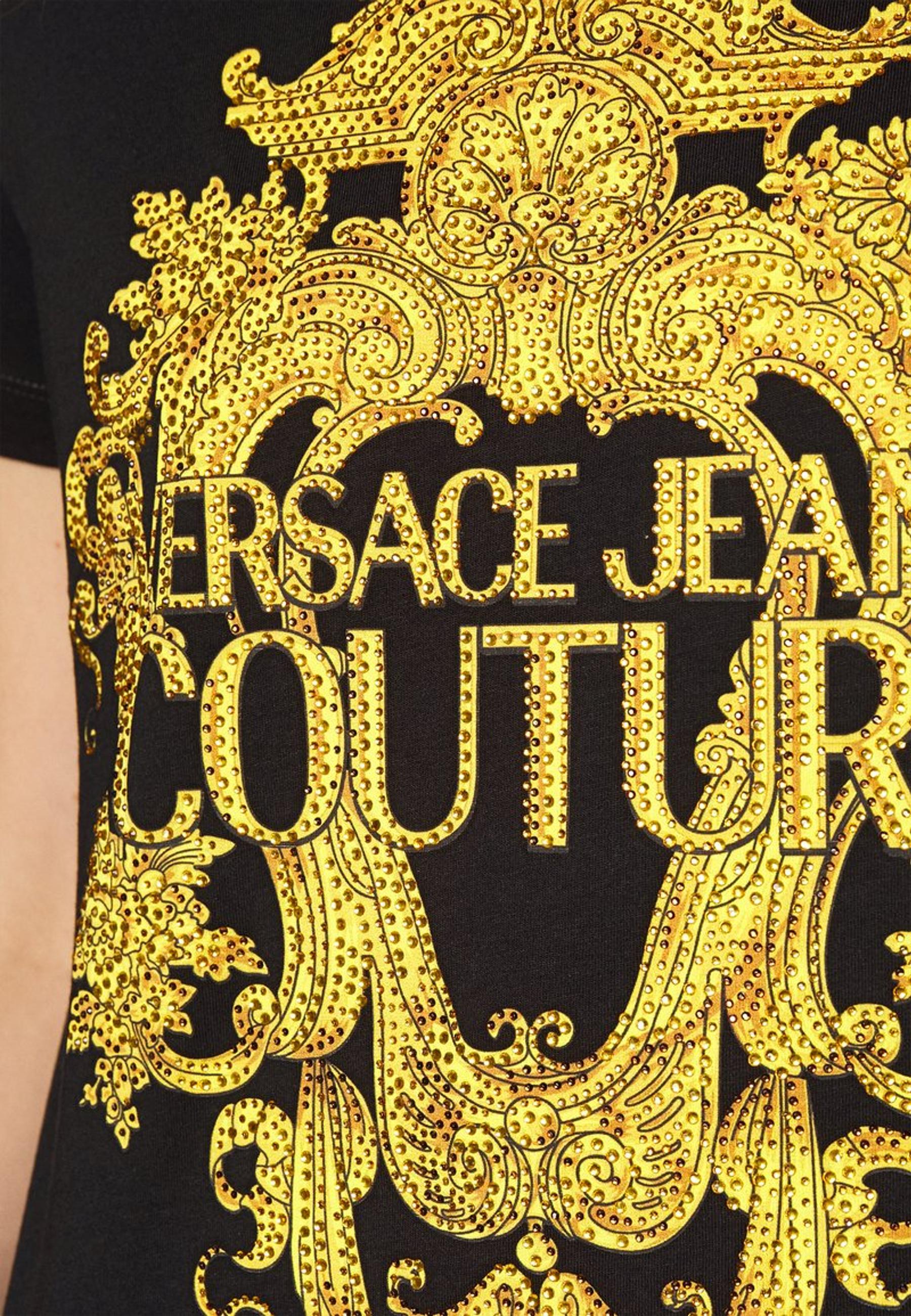 Versace Jeans Couture short-sleeved T-shirt made of cotton jersey with Baroque logo print on front and rhinestone application.
