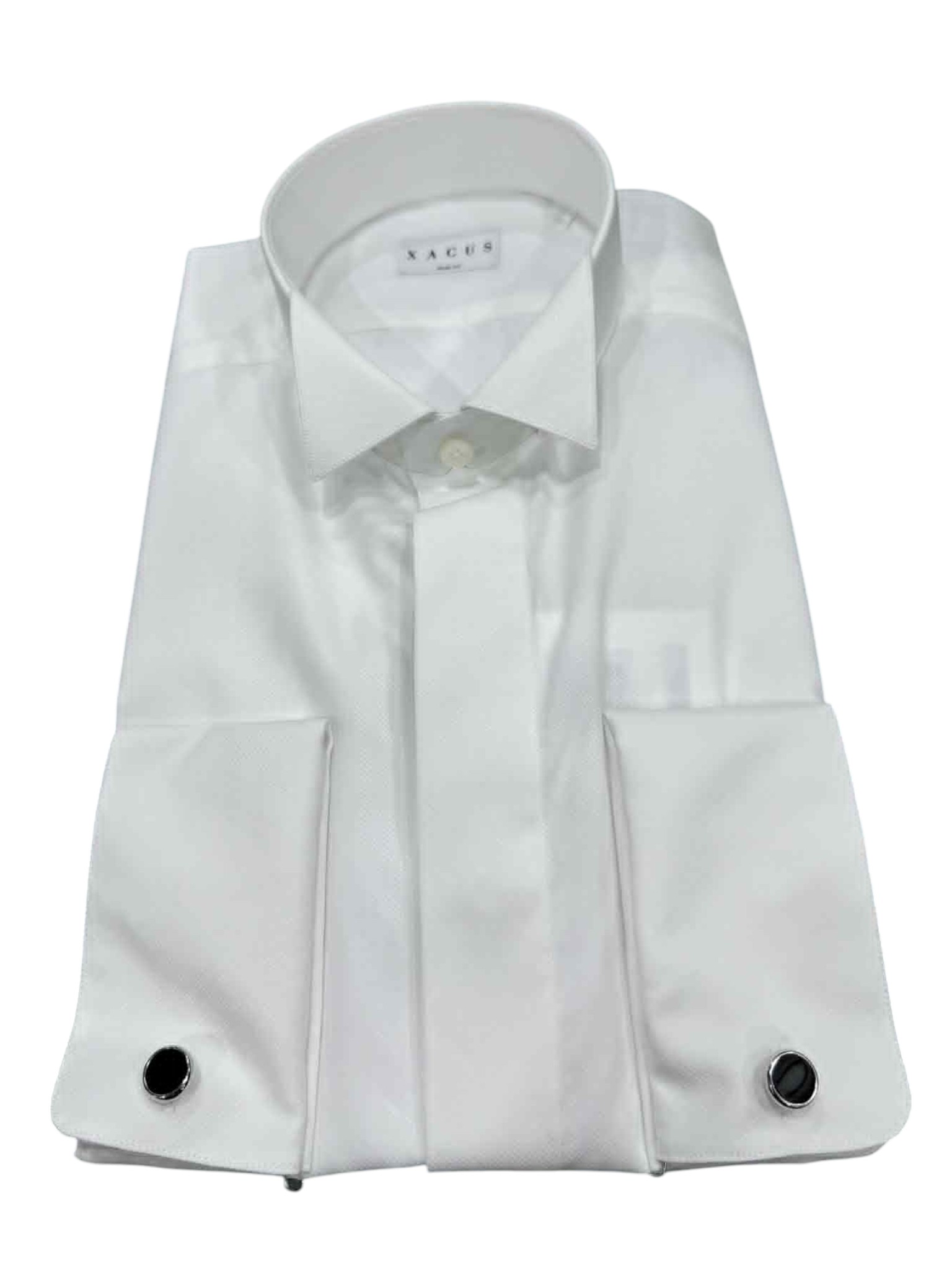 Timeless elegance and sartorial quality meet in this classic Xacus shirt, crafted from premium textured cotton for unparalleled comfort and softness. The essential design, enhanced by the classic collar and double cuffs with cufflinks, makes this piece the ideal choice for more formal occasions, from receptions to important meetings. The regular fit ensures an impeccable and refined silhouette, while the exquisite details confirm the artisanal care typical of Italian tradition. A must-have shirt for those who value quality and distinction in style.