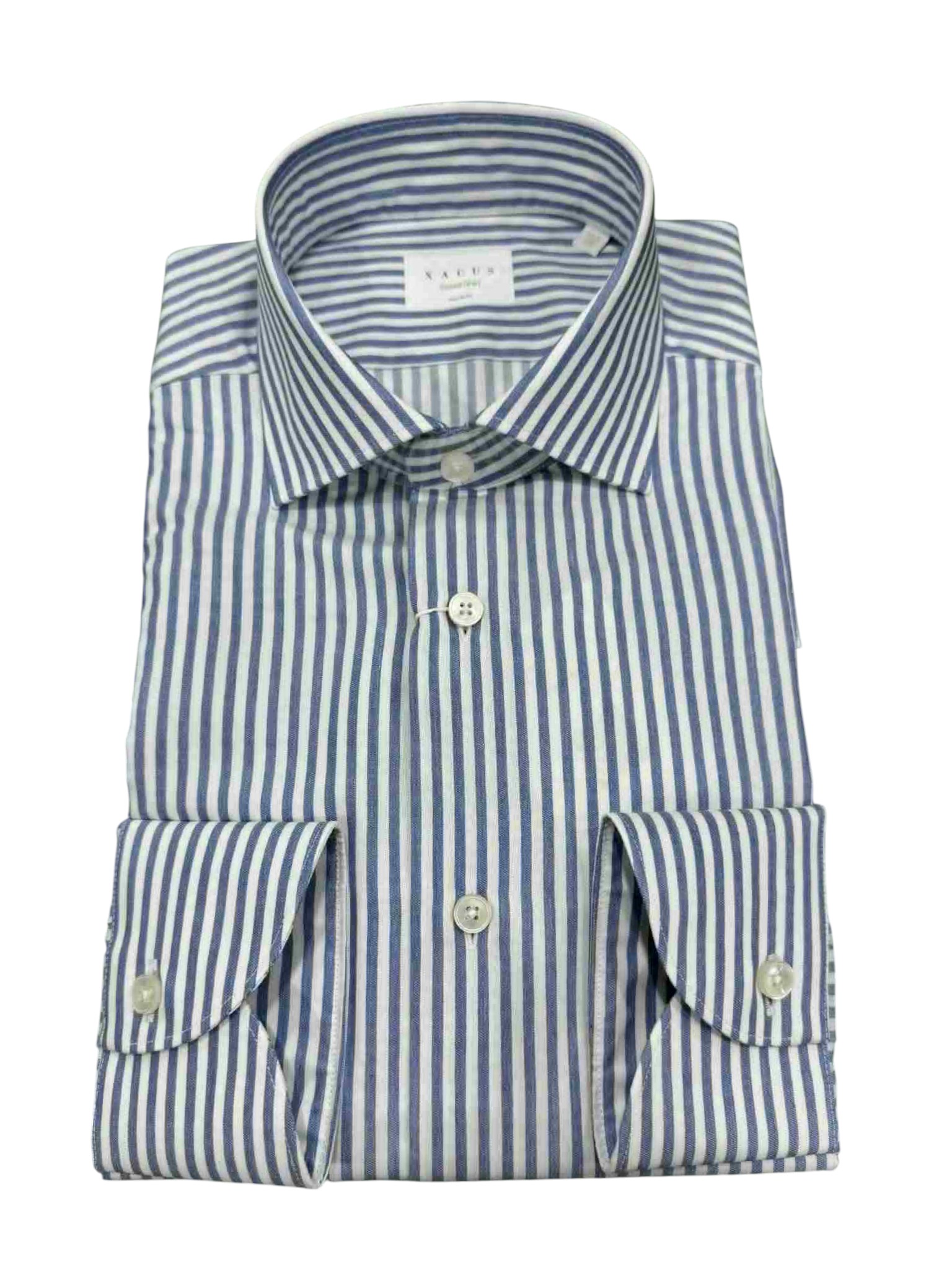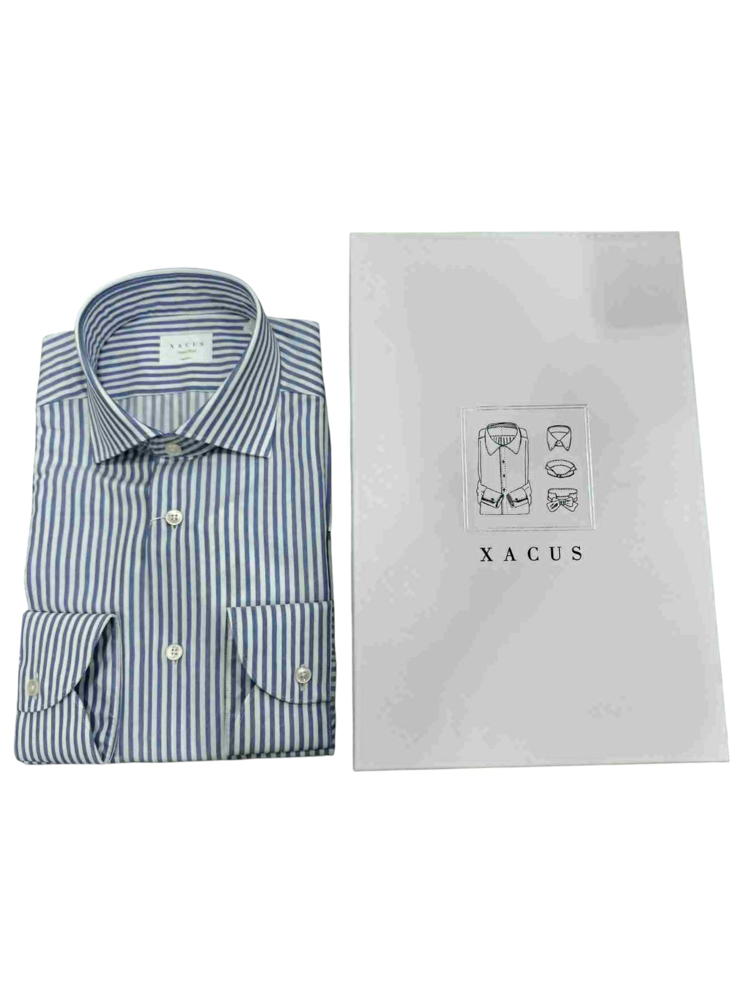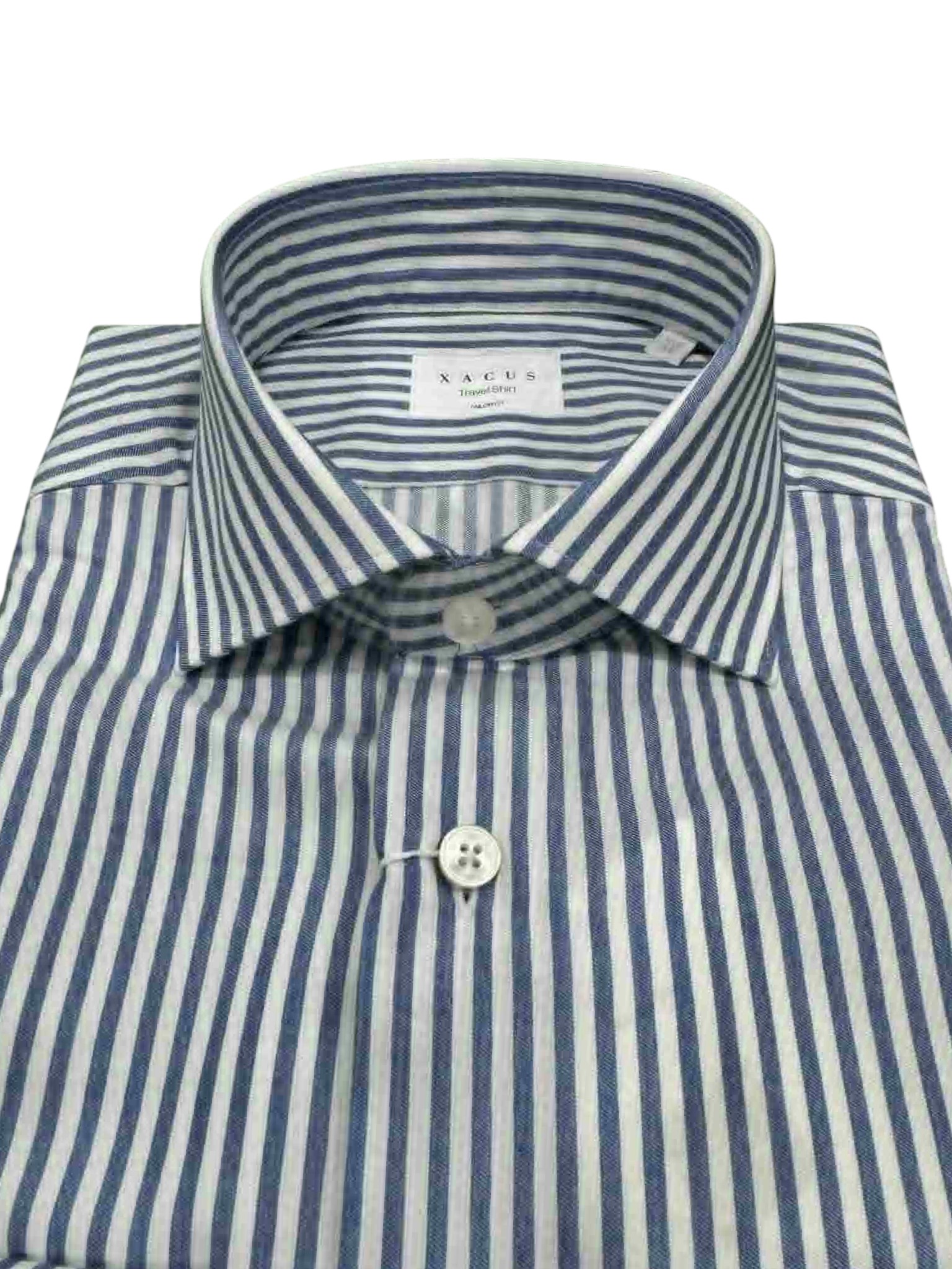 The Xacus travel shirt is designed for the dynamic man who does not compromise on elegance even when travelling. Featuring a refined blue and white vertical striped pattern, this shirt offers timeless style with a tailored fit that flatters the figure while maintaining maximum comfort. The classic collar and rounded buttoned cuffs express typical Italian sartorial care, while the easy-care technical fabric guarantees breathability, crease resistance and ease of maintenance. It is the ideal choice for those who want to face every day with style, practicality and a touch of class.
