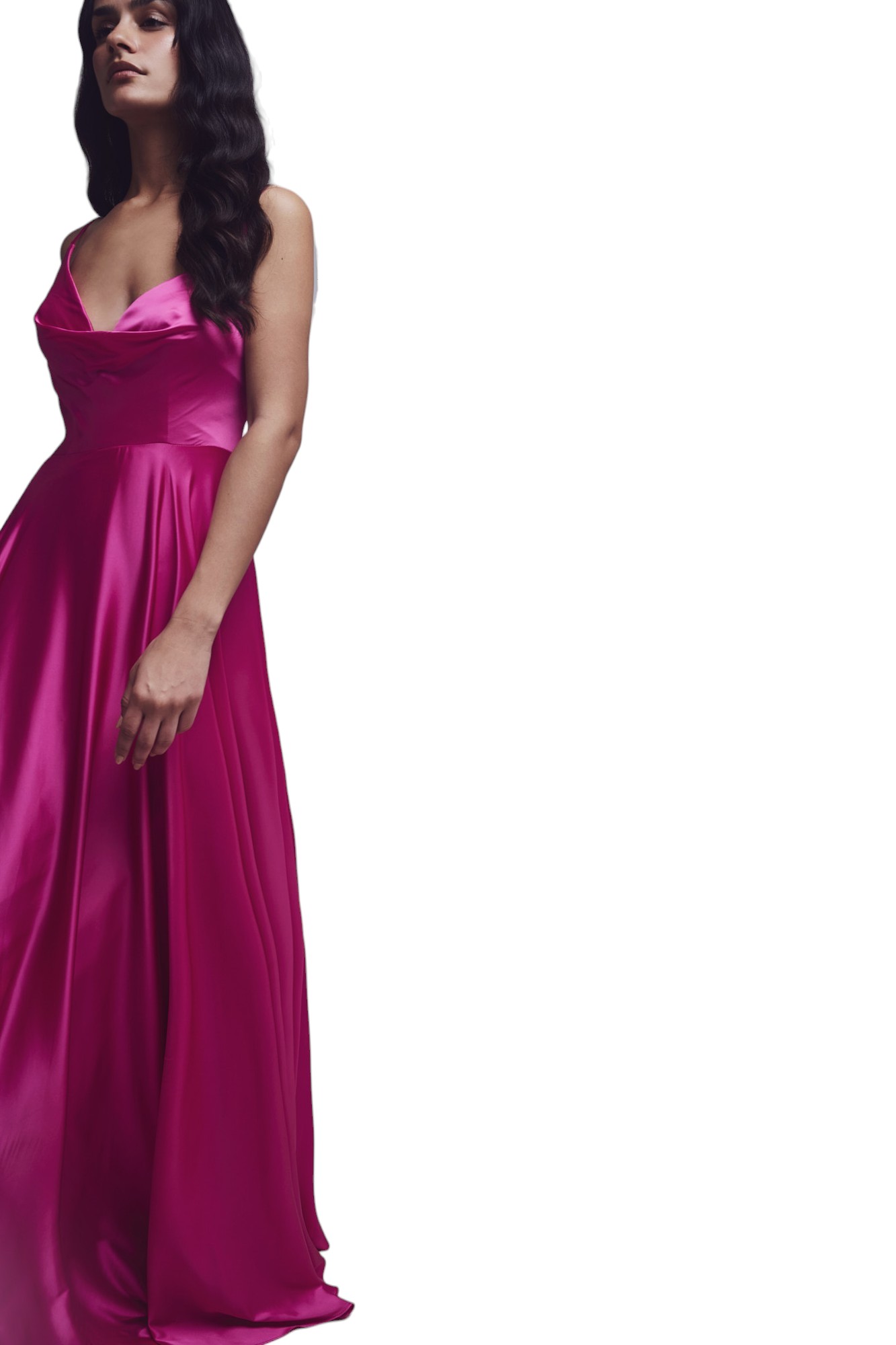 Elegante e raffinato, questo abito da cerimonia lungo è realizzato in un tessuto morbido e fluido che accarezza delicatamente la silhouette. Il design si distingue per lo scollo profondo sulla schiena, sensuale ma mai eccessivo, incorniciato da sottili bretelle che donano leggerezza e femminilità. Perfetto per occasioni speciali, questo modello unisce grazia e semplicità in un'eleganza senza tempo.