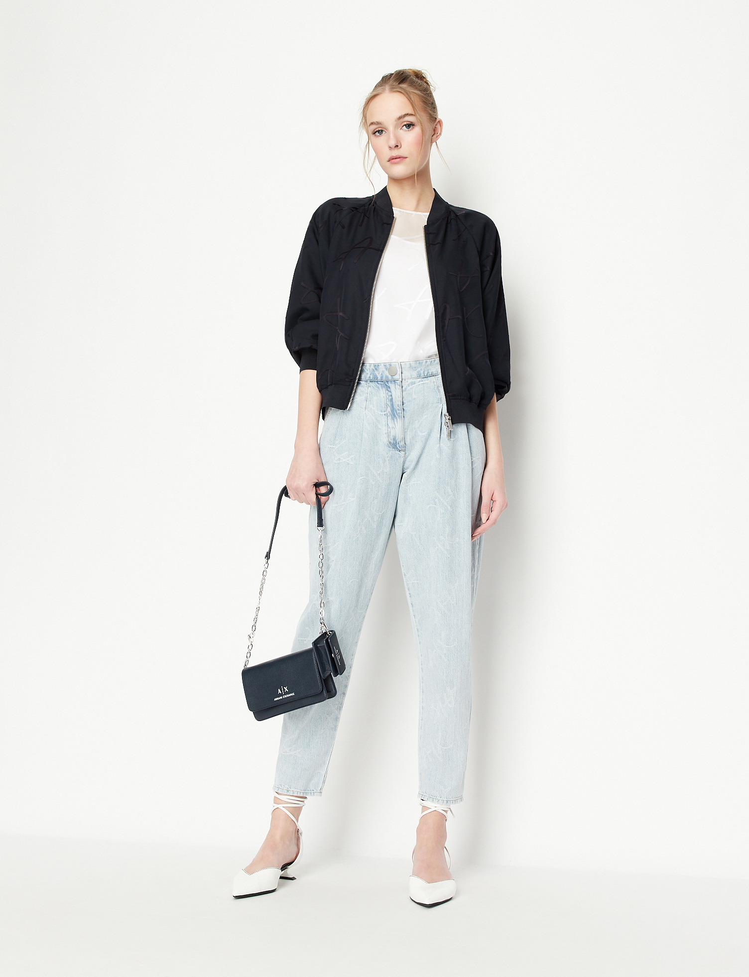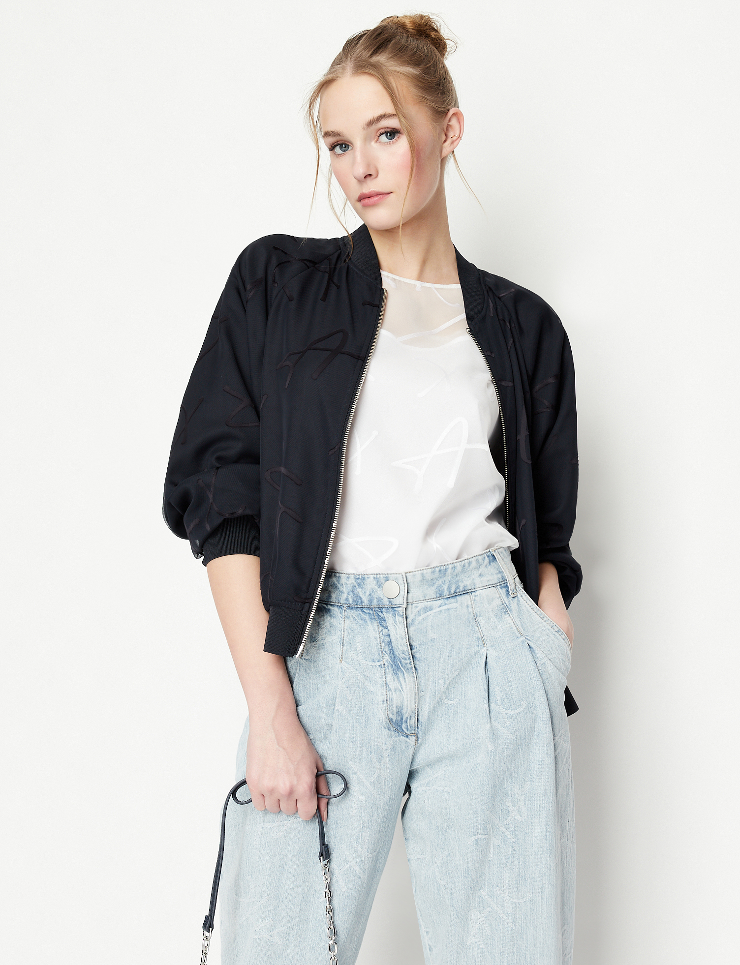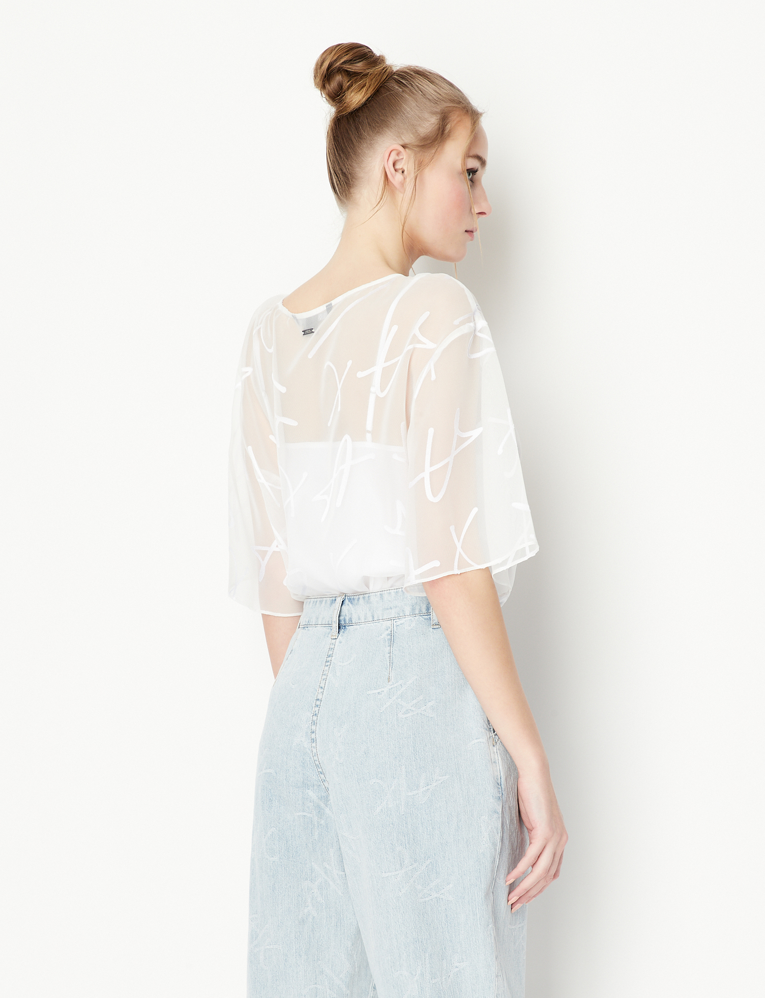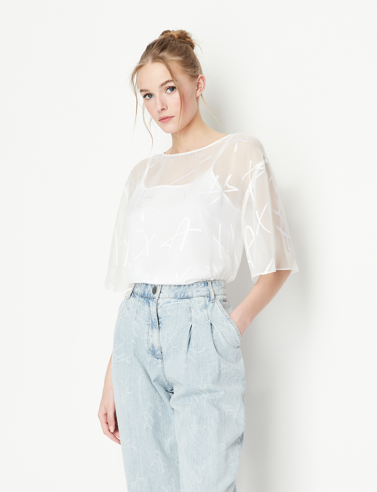 Blusa bianca in organza con scritta logo all over e canotta a tinta unita con spalline sottili ARMANI EXCHANGE | Camicie | 3RYH26 YN2KZ1000