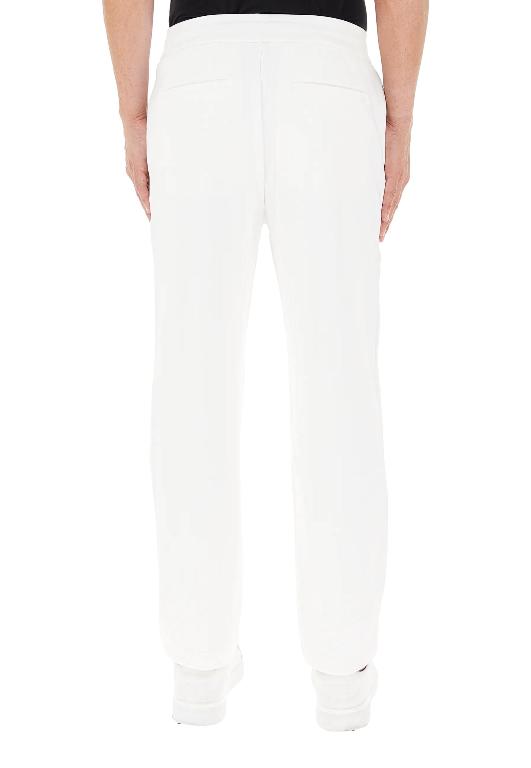 Pantalone in felpa con vita elasticizzata e coulisse, due tasche frontali e due sul retro, cuciture centrali sulle gambe, scritta logo sul davanti, interno garzato