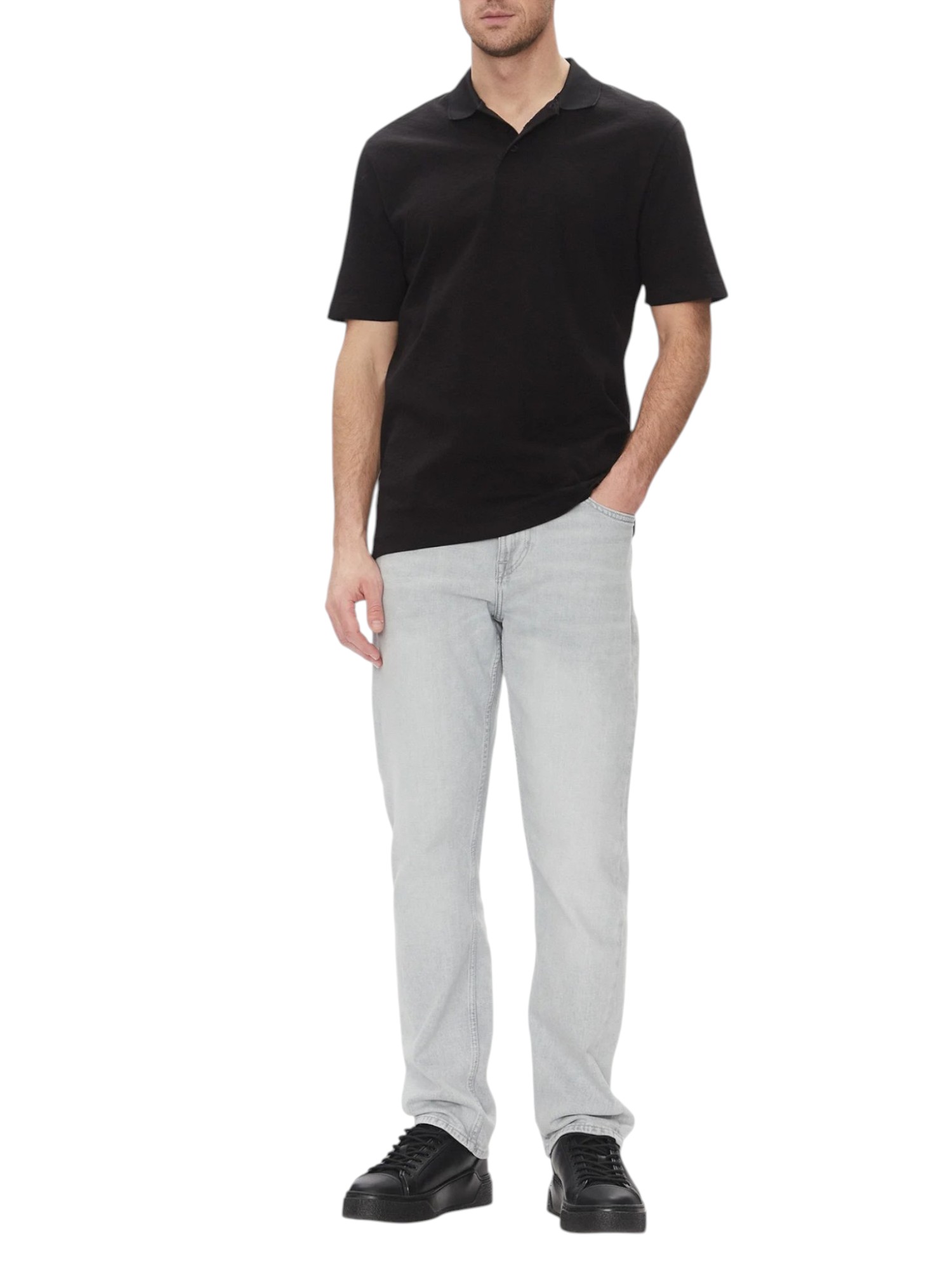 Polo uomo manica corta in puro cotone con logo AX jacquard e ricamo all-over. Chiusura a tre bottoni, vestibilità regular.