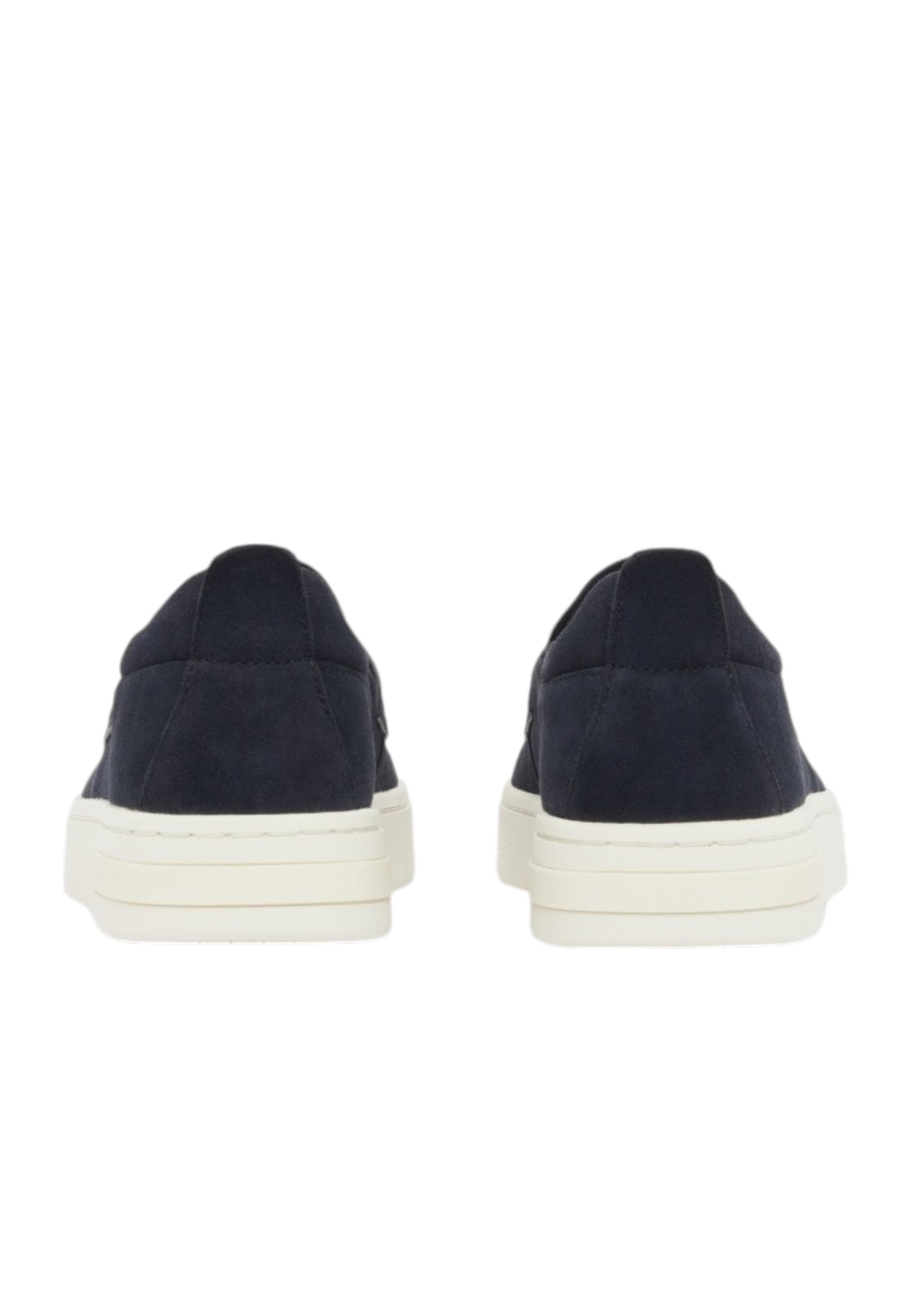 Eleganti e versatili, queste slip on reinterpretano un classico del guardaroba maschile con un'estetica contemporanea. Realizzati in morbido suede, offrono una texture raffinata e un look essenziale perfetto per ogni occasione casual. Il modello slip-on è caratterizzato da mascherina frontale tono su tono, che richiama il design tradizionale del mocassino, mentre la suola piatta in gomma garantisce comfort e stabilità durante tutta la giornata. Il passante posteriore facilita la calzata e aggiunge un dettaglio funzionale al design minimal.
