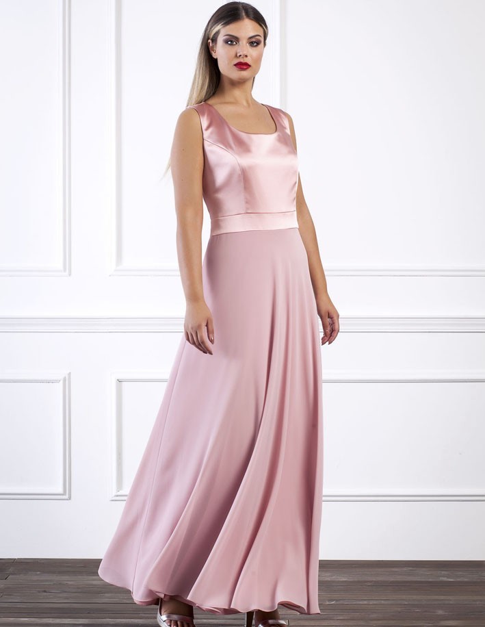 Perfetto per cerimonie ed eventi eleganti, questo abito coniuga comfort e stile in una silhouette fluida e femminile.