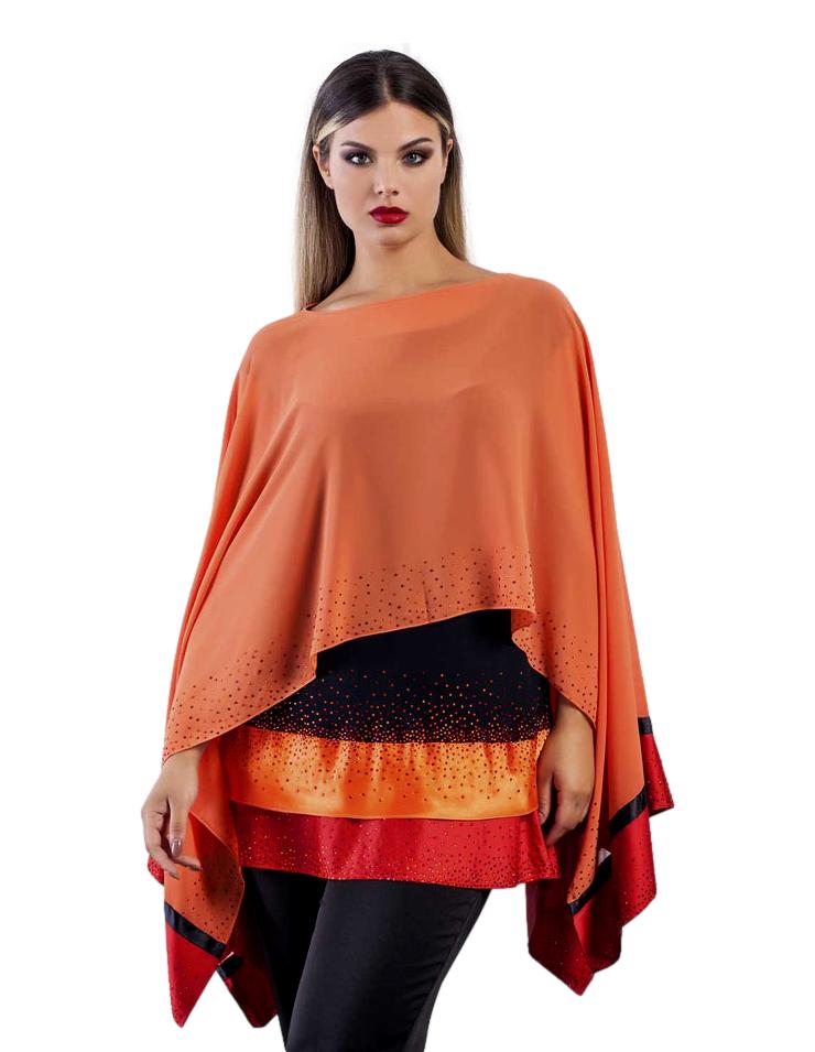 Completo elegante e moderno composto da un pantalone palazzo dal taglio ampio e scivolato, che dona slancio e comfort alla silhouette. La mantella leggera, rifinita con un raffinato bordo decorato di strass, aggiunge un tocco di luce e movimento all'outfit. A completare il look, una canotta a doppio strato nei toni armoniosi di tre colori, interamente impreziosita da strass ad effetto, per un risultato brillante, sofisticato e femminile. Un coordinato perfetto per cerimonie, serate eleganti o occasioni speciali in cui vuoi risplendere con stile.