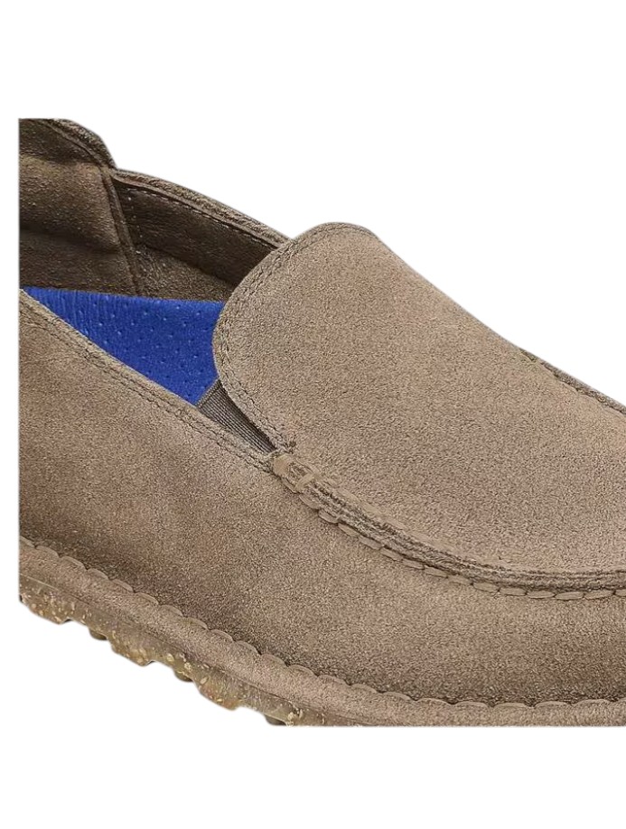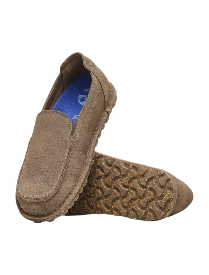 BIRKENSTOCK Utti è una scarpa in stile mocassino dal design senza tempo. L’appariscente cucitura è una vera chicca. La morbida linguetta sul tallone aumenta la comodità di indosso ma permette anche di infilare e sfilare comodamente la scarpa. Il plantare Deep Blue è comodo e leggero e rende questa scarpa così confortevole che può essere indossata sempre senza problemi, anche in quelle giornate che non finiscono mai, piene di cose da fare. Perfetta per il prossimo viaggio, per lunghe passeggiate o per un giro in città. La tomaia è in pelle scamosciata particolarmente morbida che aderisce al piede come una seconda pelle.