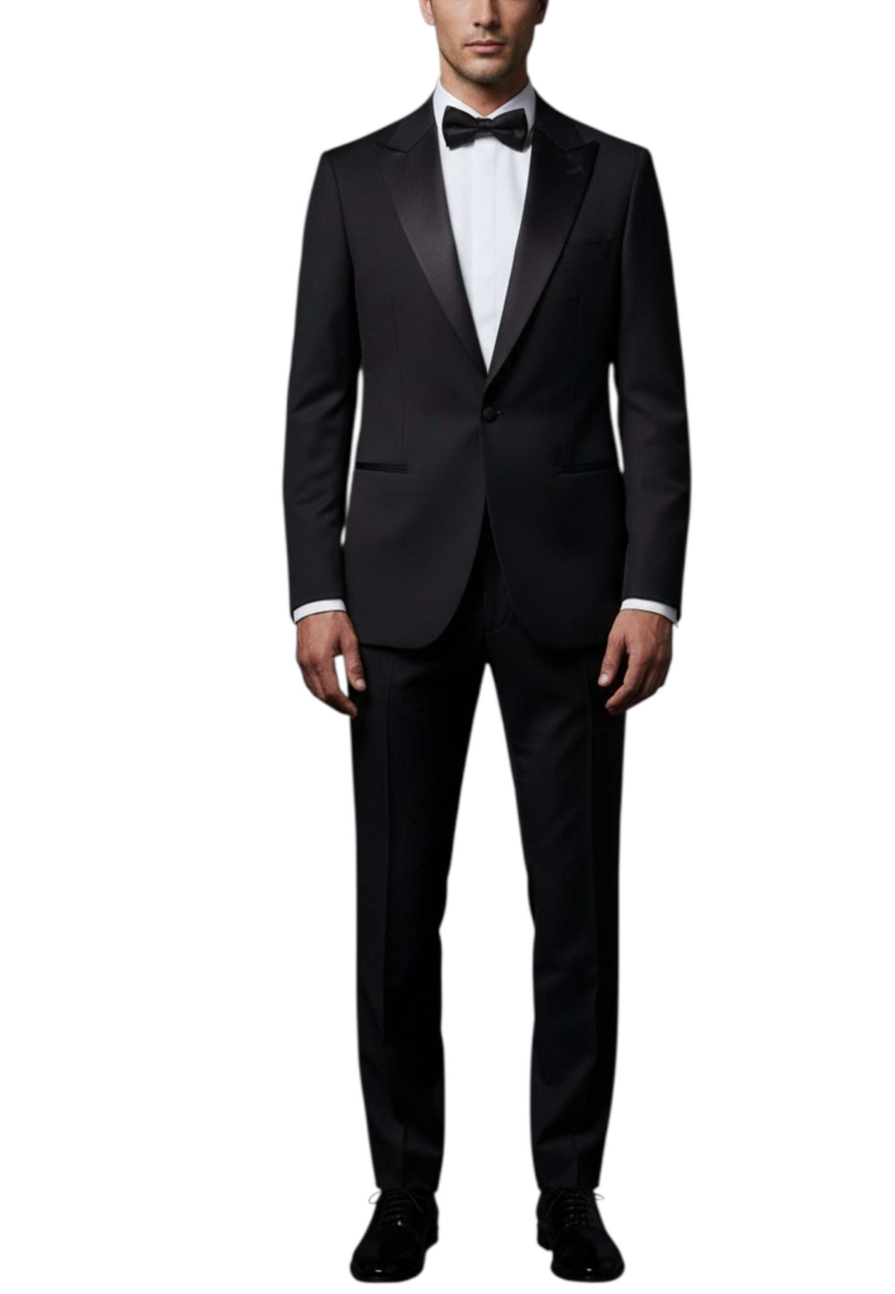 Smoking elegante e sofisticato, caratterizzato da una giacca con chiusura a un bottone e rever a lancia, per un look deciso e senza tempo. Il petto è impreziosito da una linea pulita e strutturata, mentre la tasca a filo aggiunge un tocco di raffinatezza minimal.