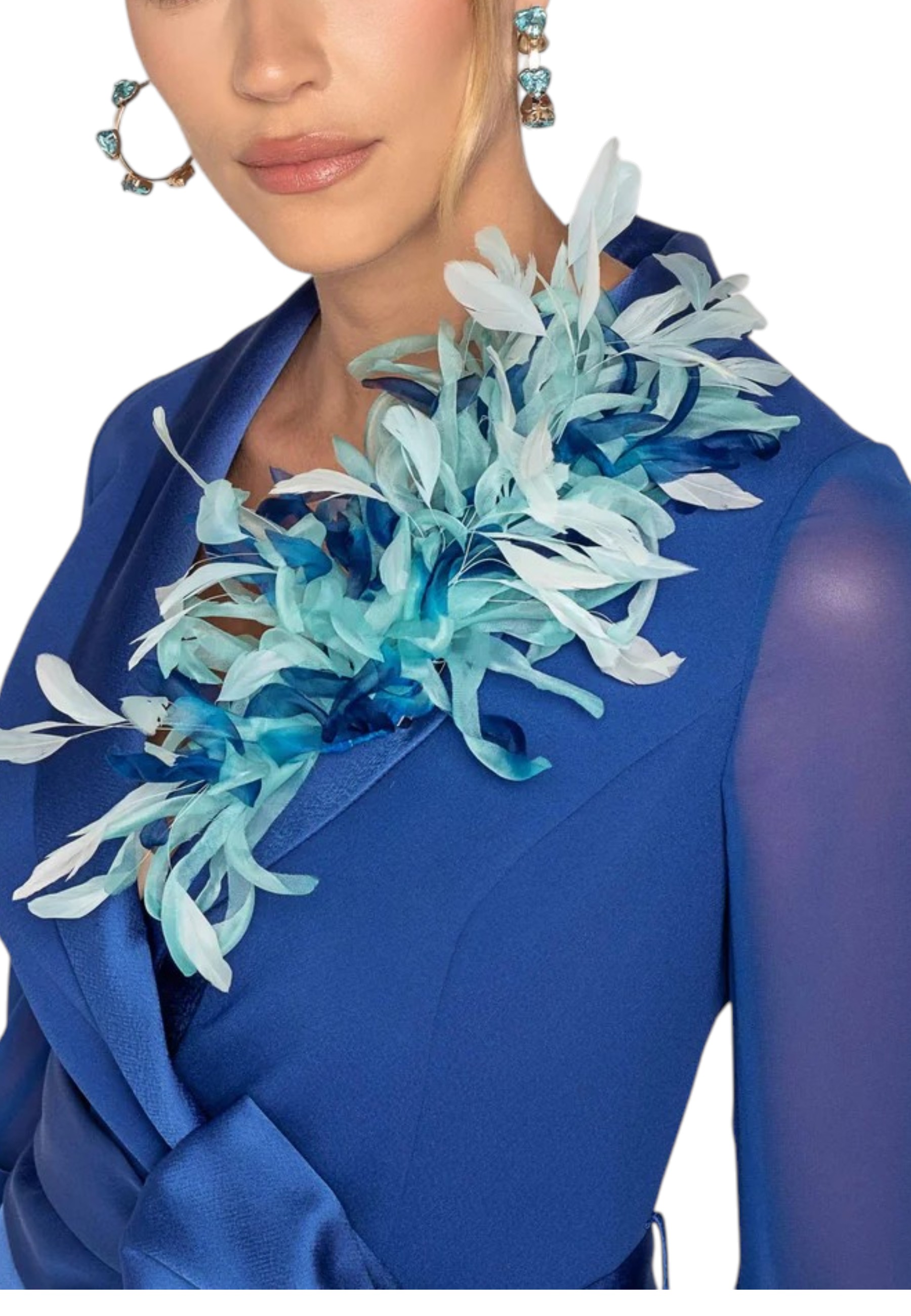 Eleganza e femminilità si incontrano in questo abito dal design raffinato. Il corpetto strutturato, arricchito da un profondo scollo a V incrociato, valorizza il décolleté con naturale armonia, mentre le maniche a tre quarti in chiffon donano leggerezza e movimento.