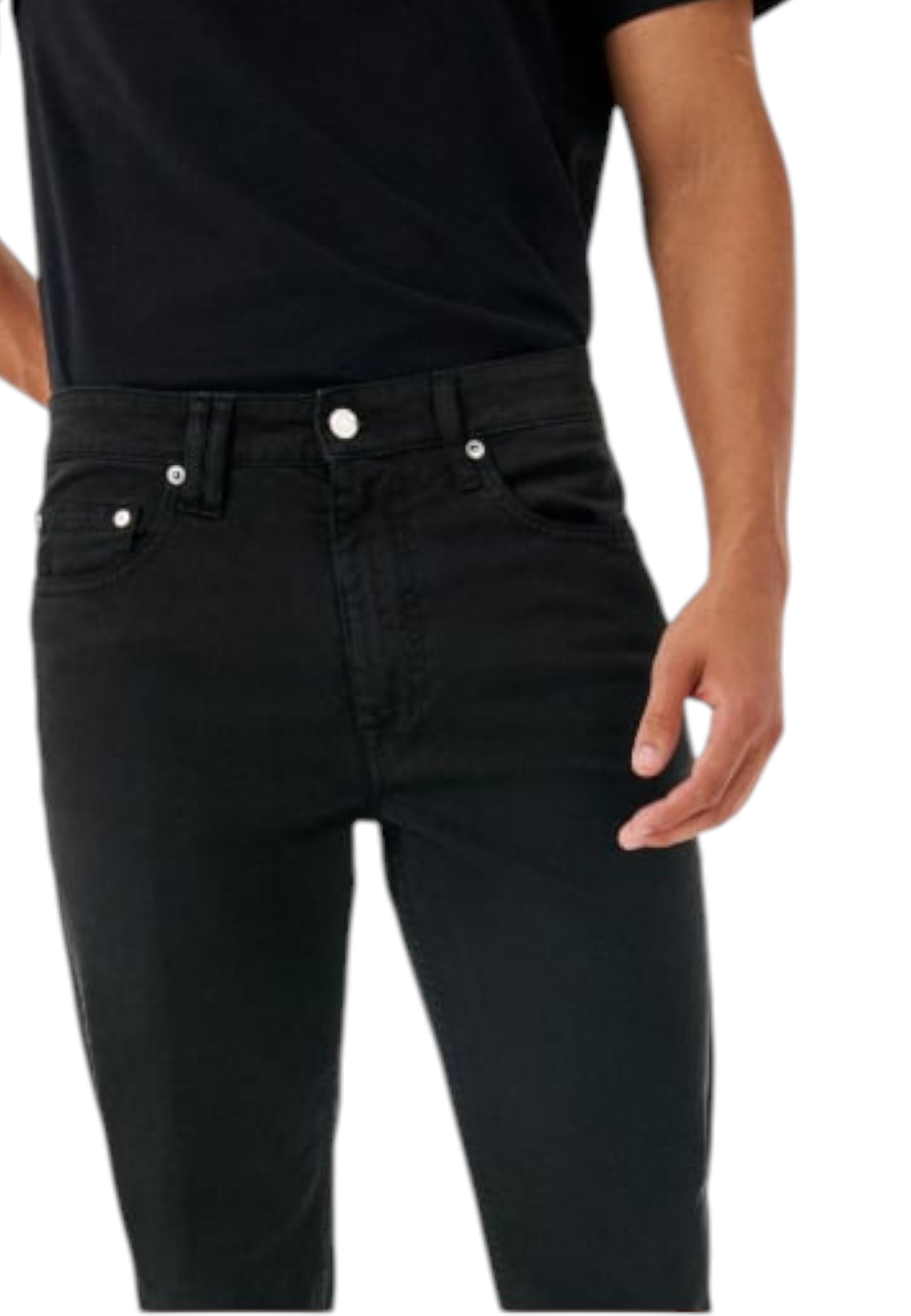 Jeans tapered fit con vita alta. Il modello cinque tasche presenta una vita più morbida e una gamba regolare che si stringe verso il fondo. Il tessuto, un confortevole bull denim tinto in capo color black, si caratterizza per l'estetica used, messa in risalto dalle dalle piccole rotture in corrispondenza dei bordi delle tasche e del fondo gamba. Il tocco distintivo è rappresentato dall’incrocio di passanti sul retro che richiama il logo e, sulla tasca posteriore, dall’inconfondibile logo placcato, espressione del DNA del brand. Un capo urban in puro stile Cycle, pensato per elevare anche i tuoi look quotidiani.