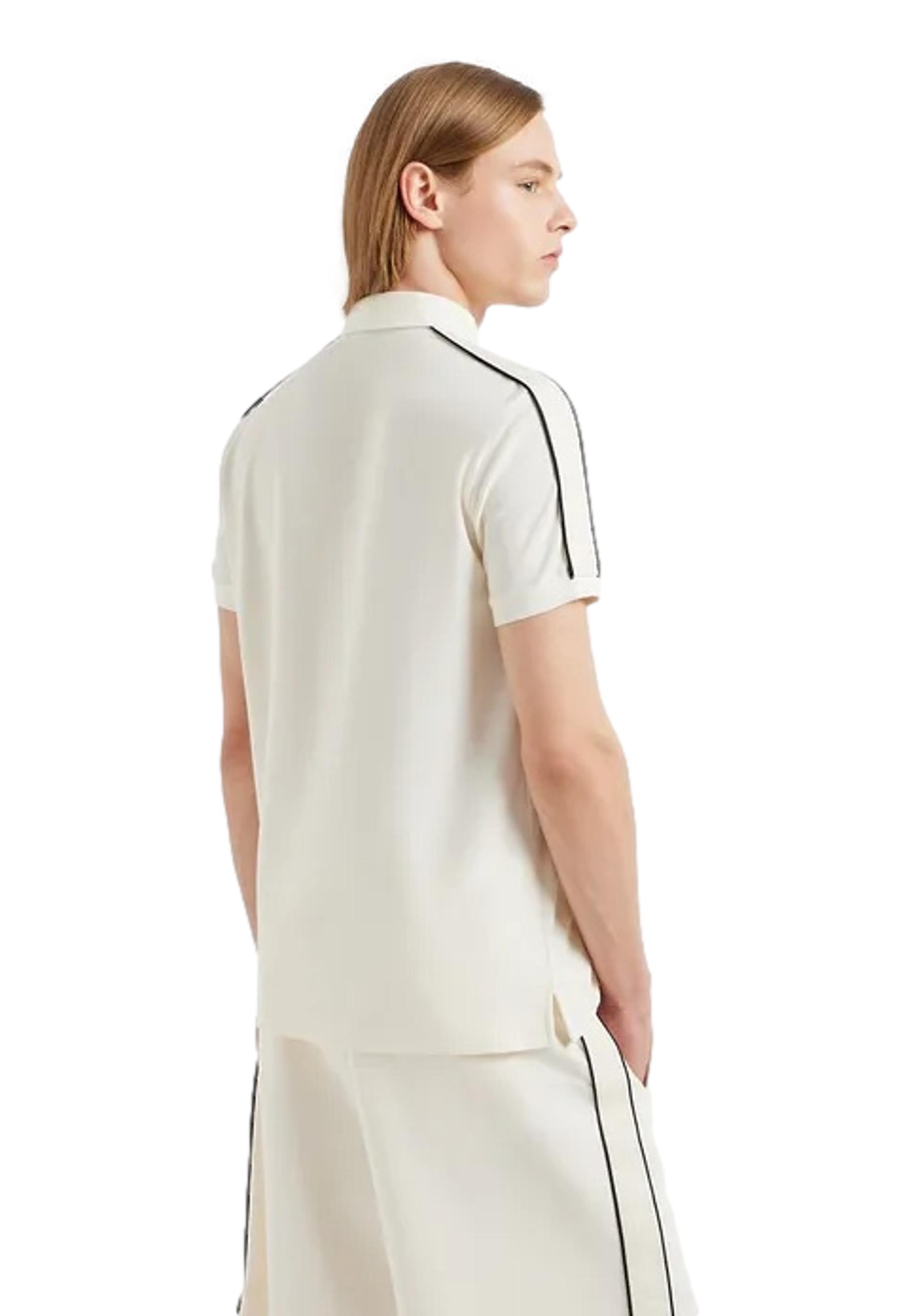 Polo maniche corte Emporio Armani, impreziosita da trama all over e bordo manica a contrasto. Chiusura colletto con tre bottoni.