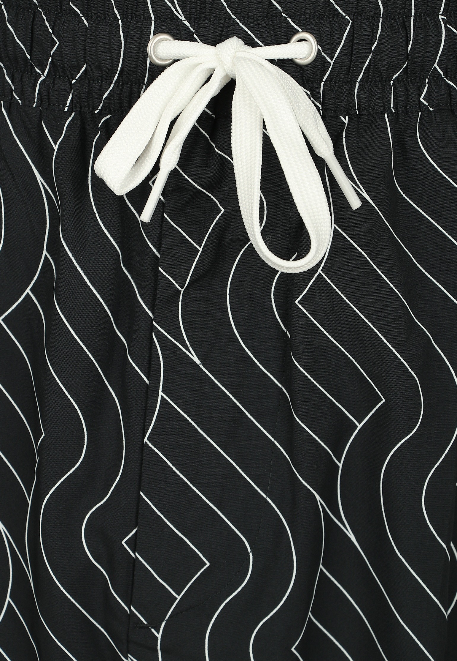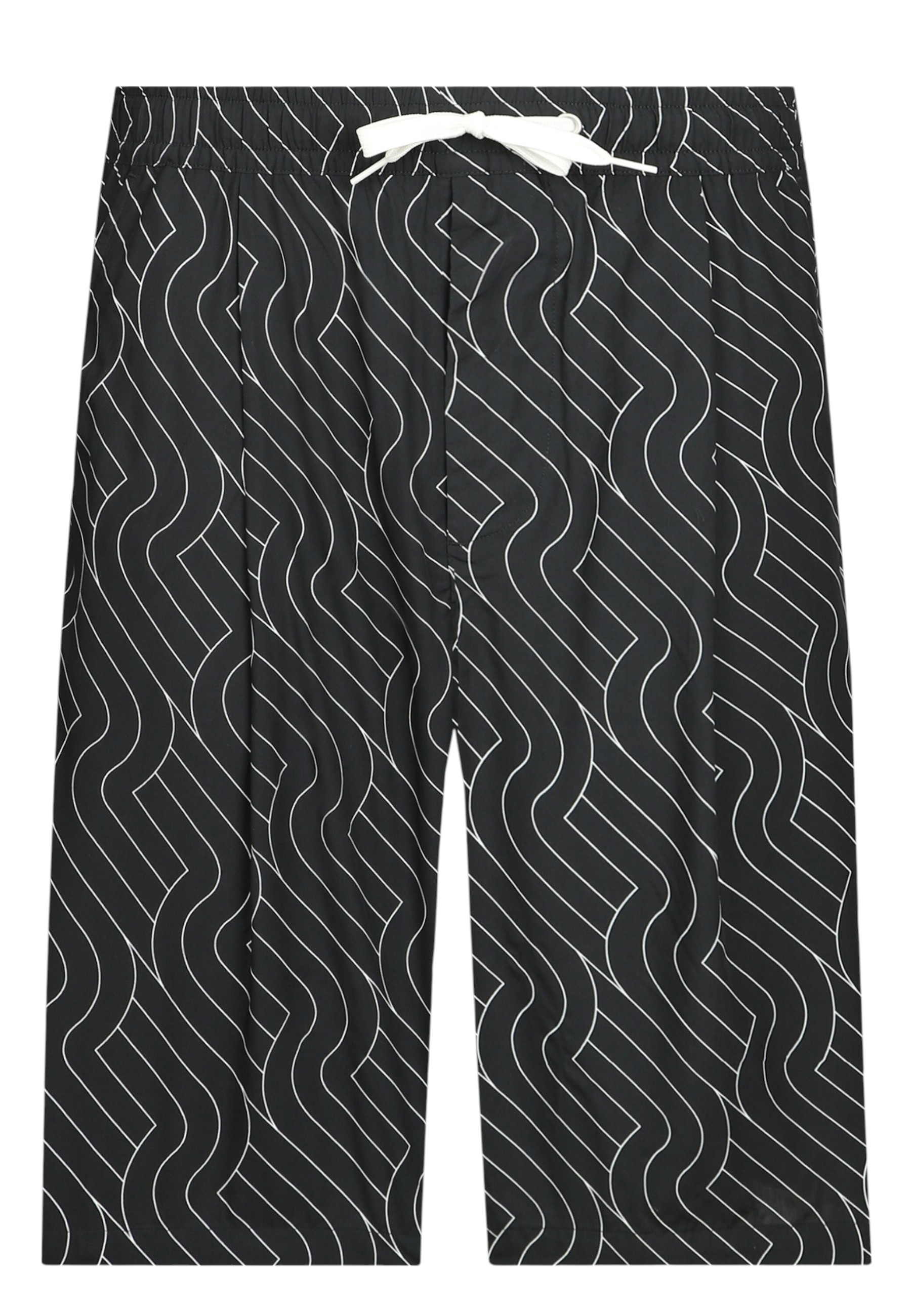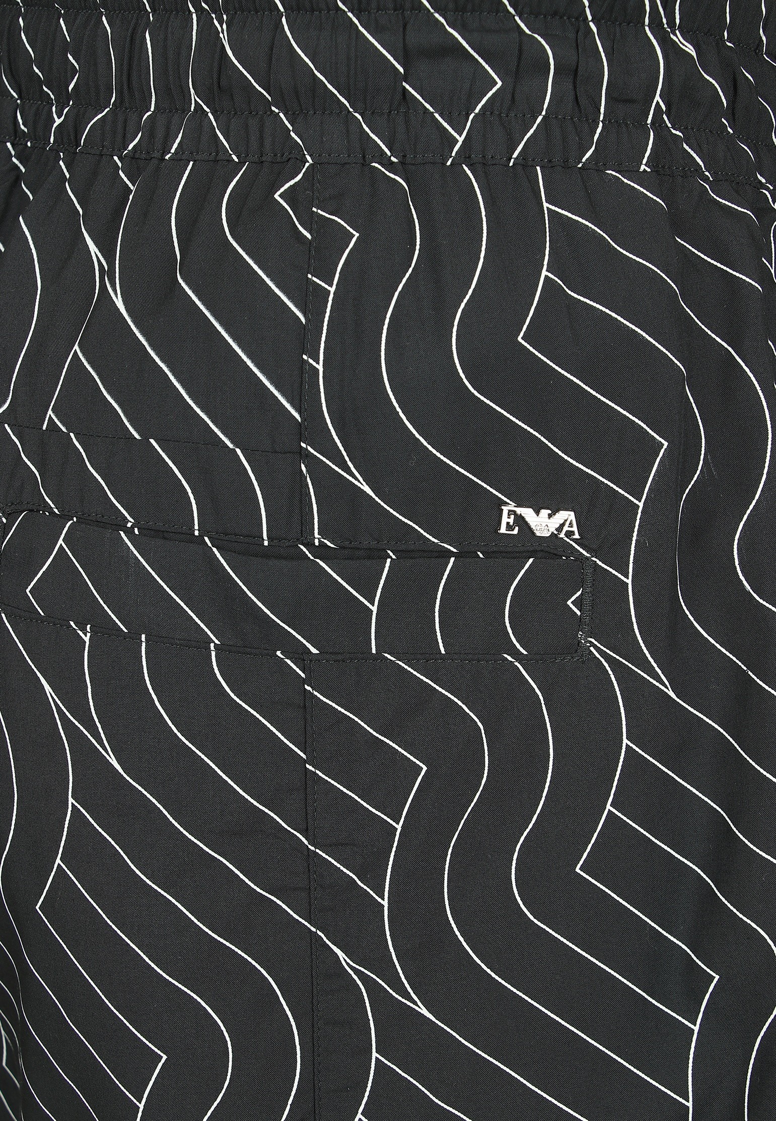 Pantaloncini neri con pieghe sul davanti di Emporio Armani. Chiusura con coulisse, è caratterizzato da elastico in vita, chiusura frontale con zip, applicazione logo in metallo color argento sul retro, due tasche frontali e una tasca posteriore.
