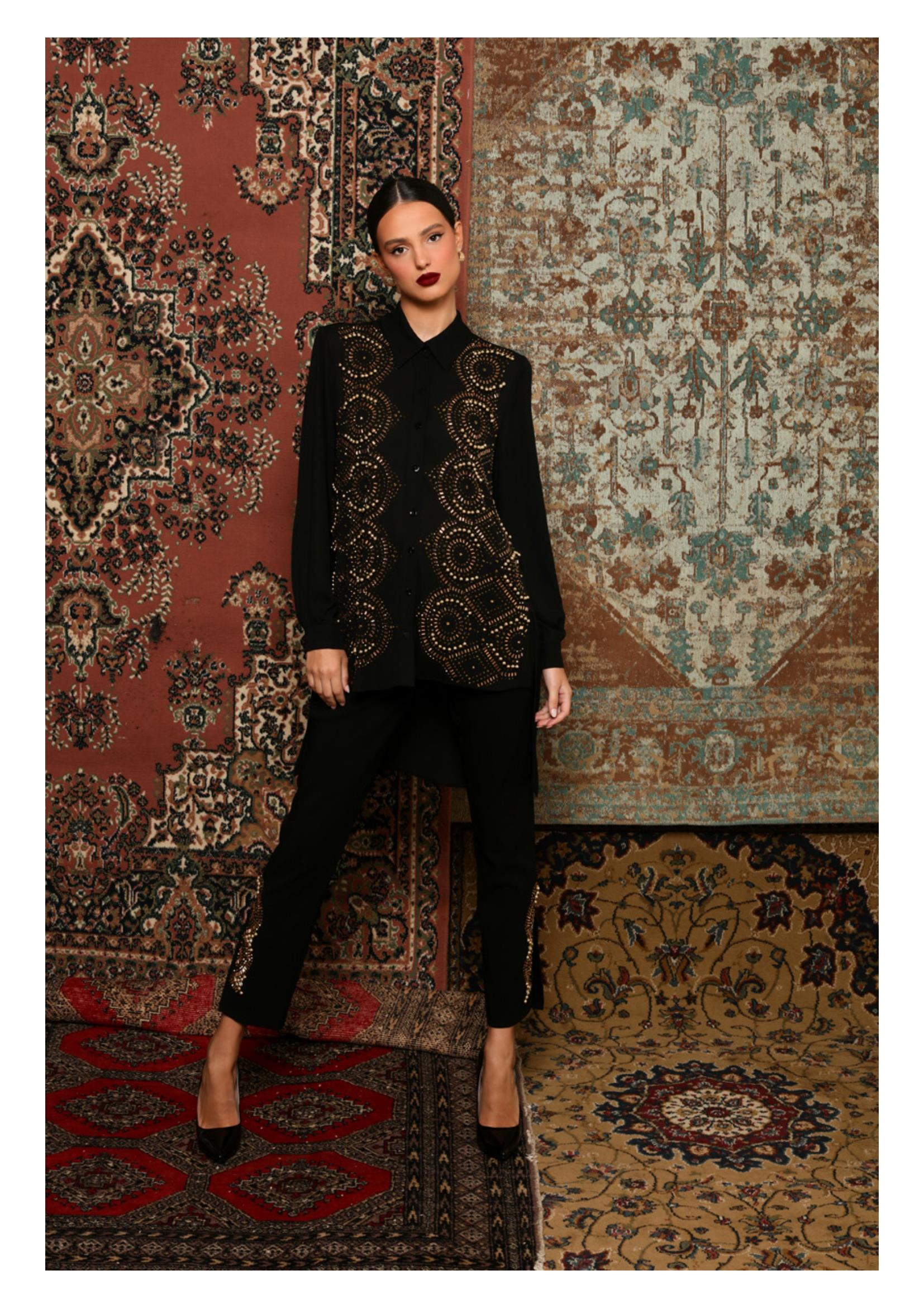 Pantalone con spacchetti e applicazioni oro