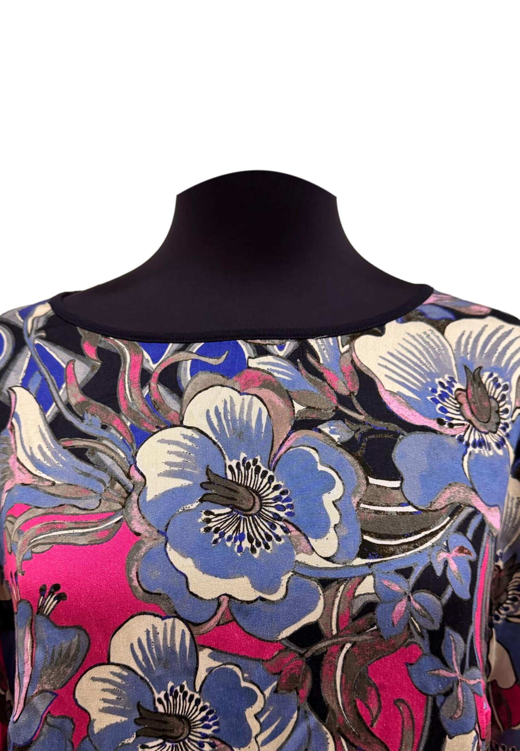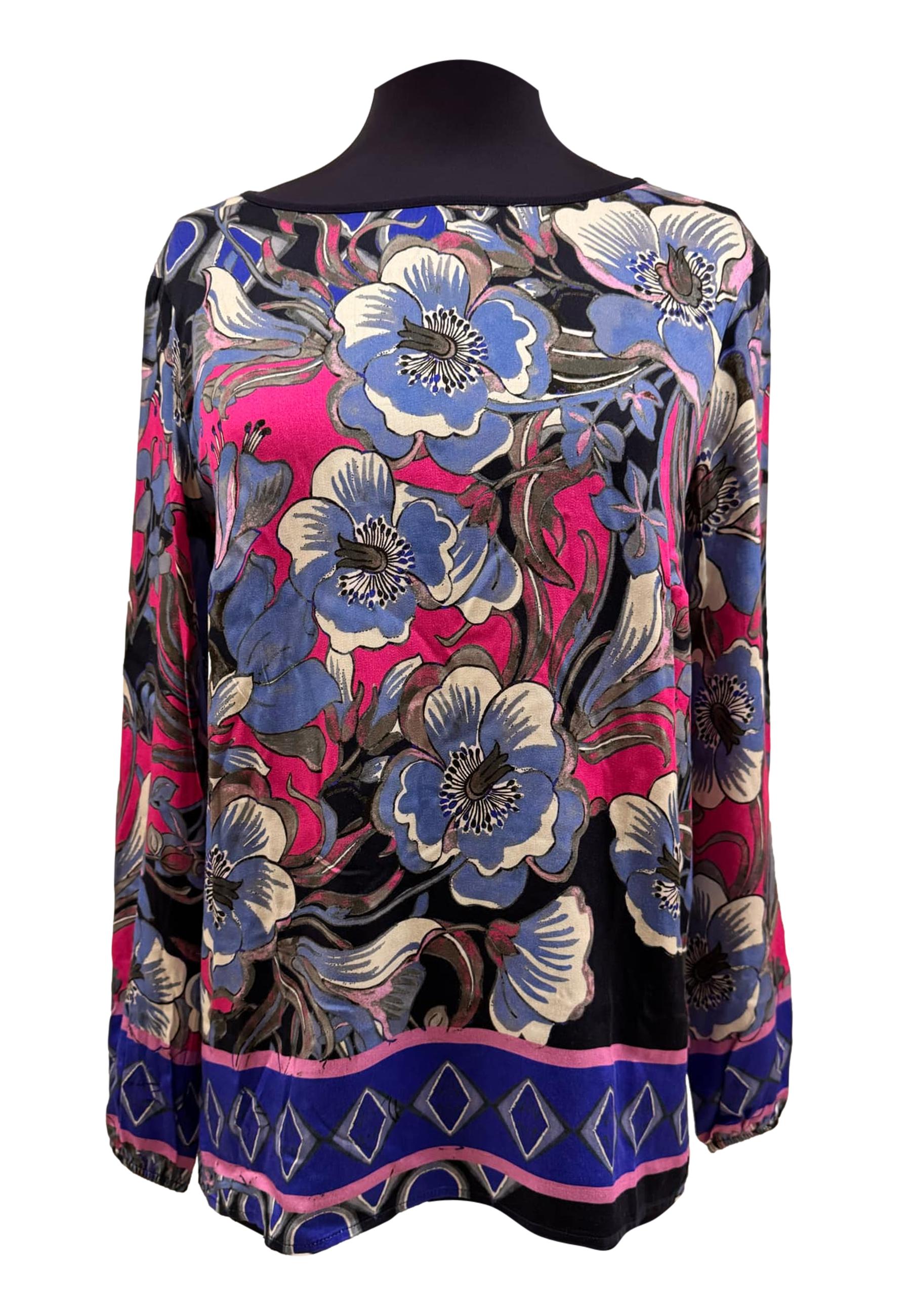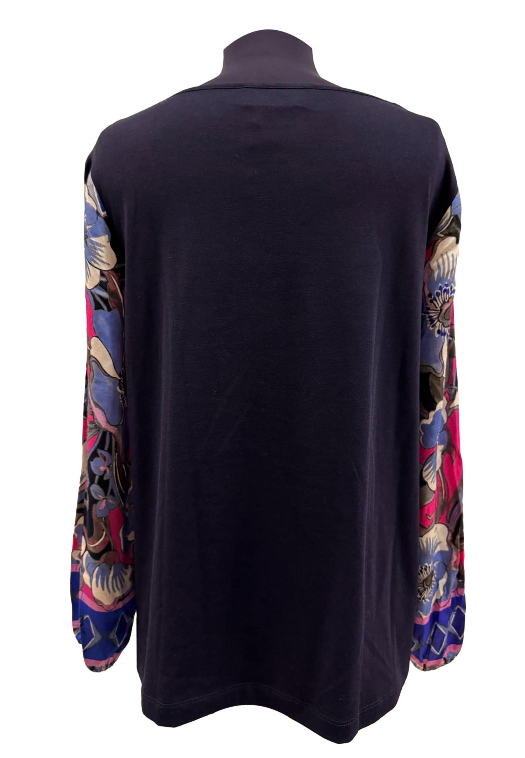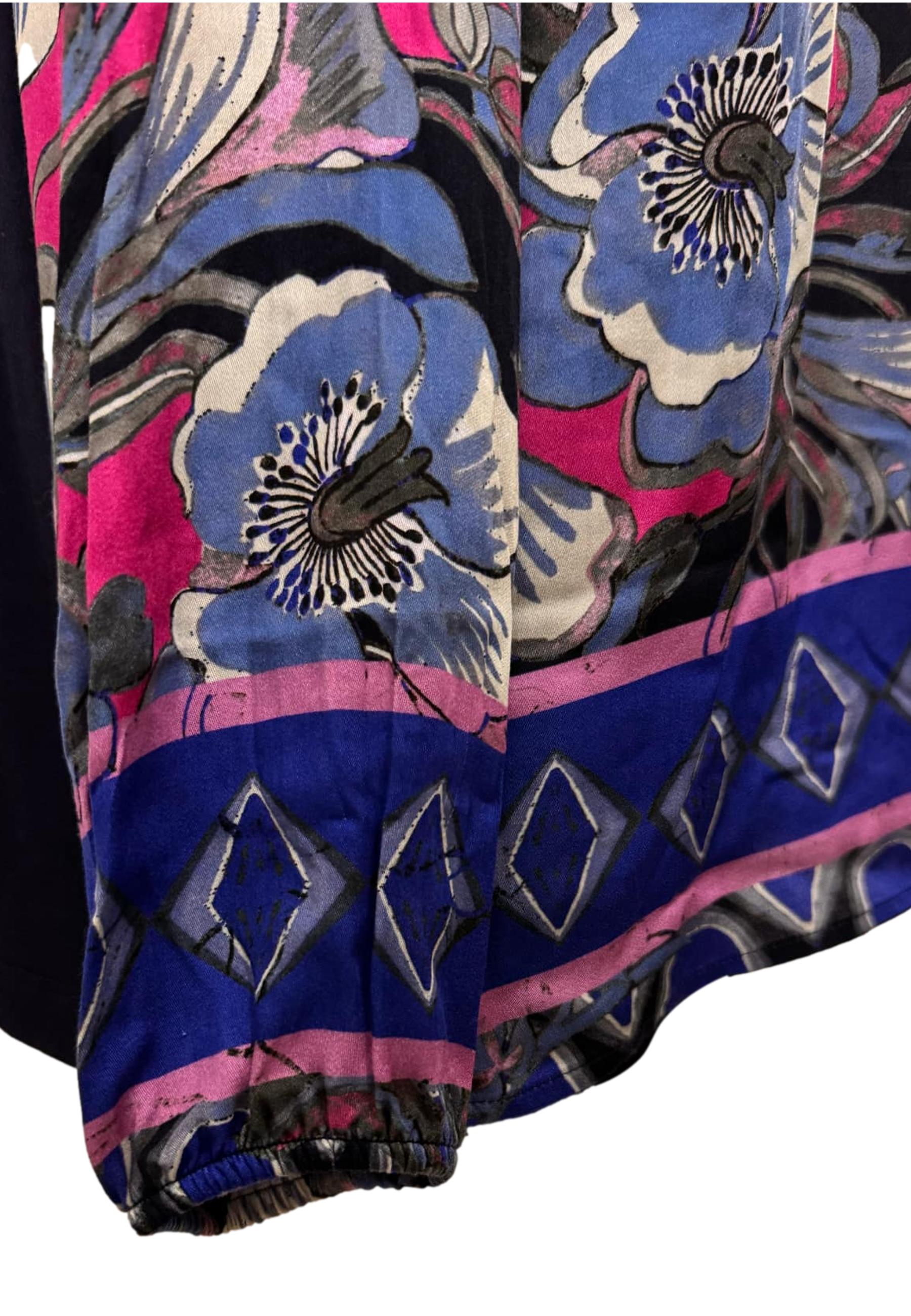 Blusa girocollo fantasia floreale con elastico ai polsini e retro tinta unita.