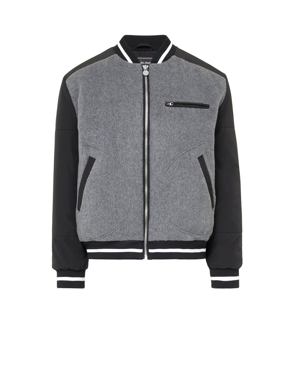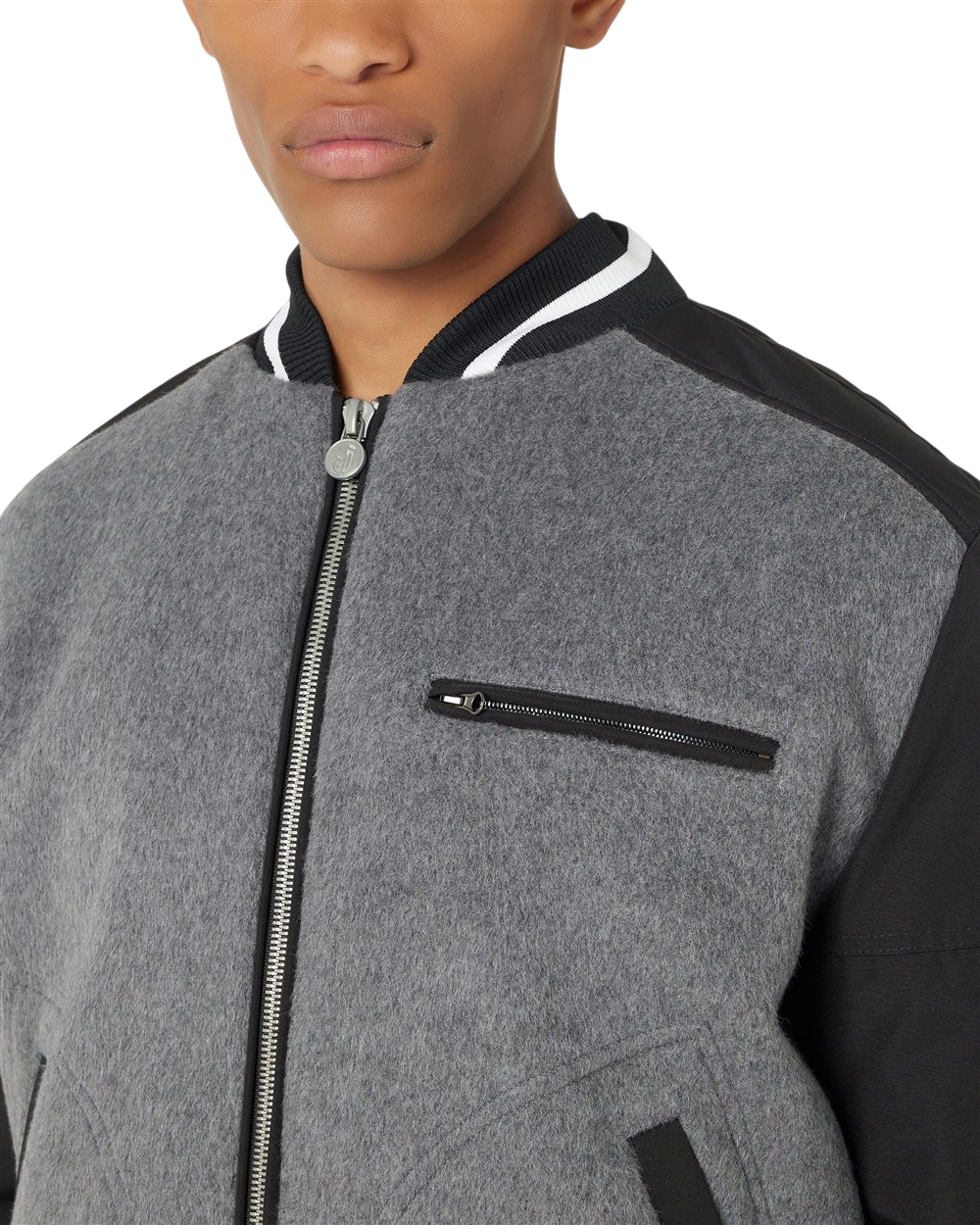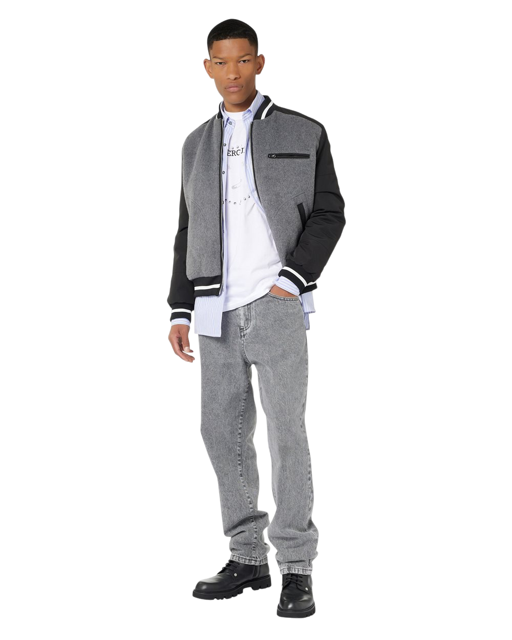 Varsity jacket in panno misto lana nero e grigio con inserti nylon cordura e logo Iceberg Jeans