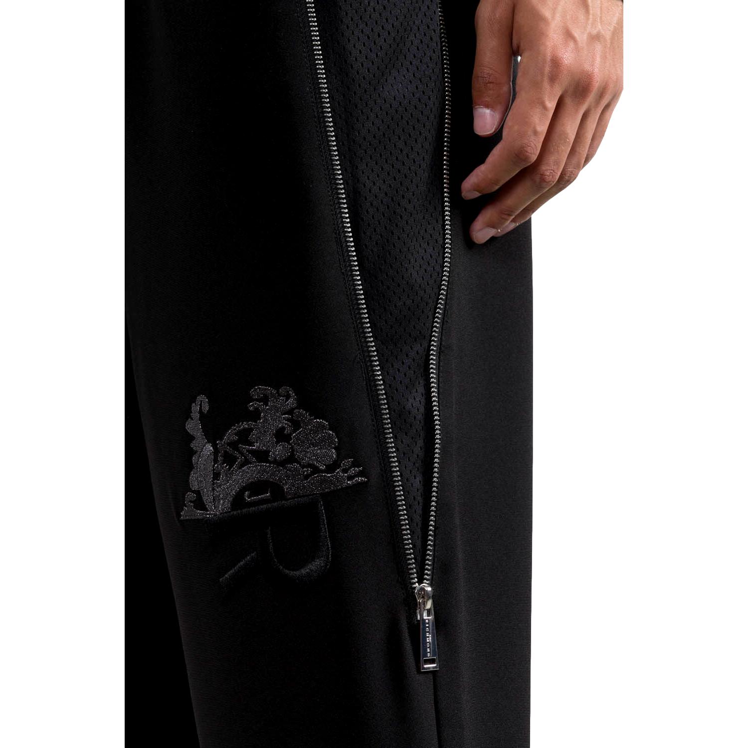 Vita con coulisse, dettagli color argento, due tasche laterali con zip, fodera in rete, logo ricamato, applicazione posteriore con logo, due tasche posteriori a filetto e cuciture tono su tono. Colore: nero.