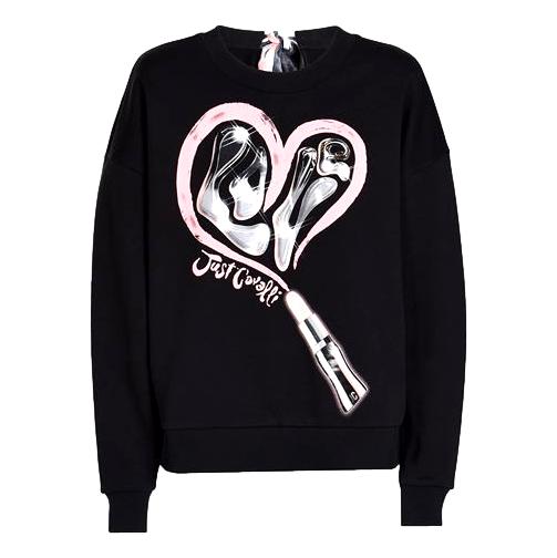 Felpa in cotone nero con stampa cuore JUST CAVALLI | Felpe | S04GU0125 N25189900