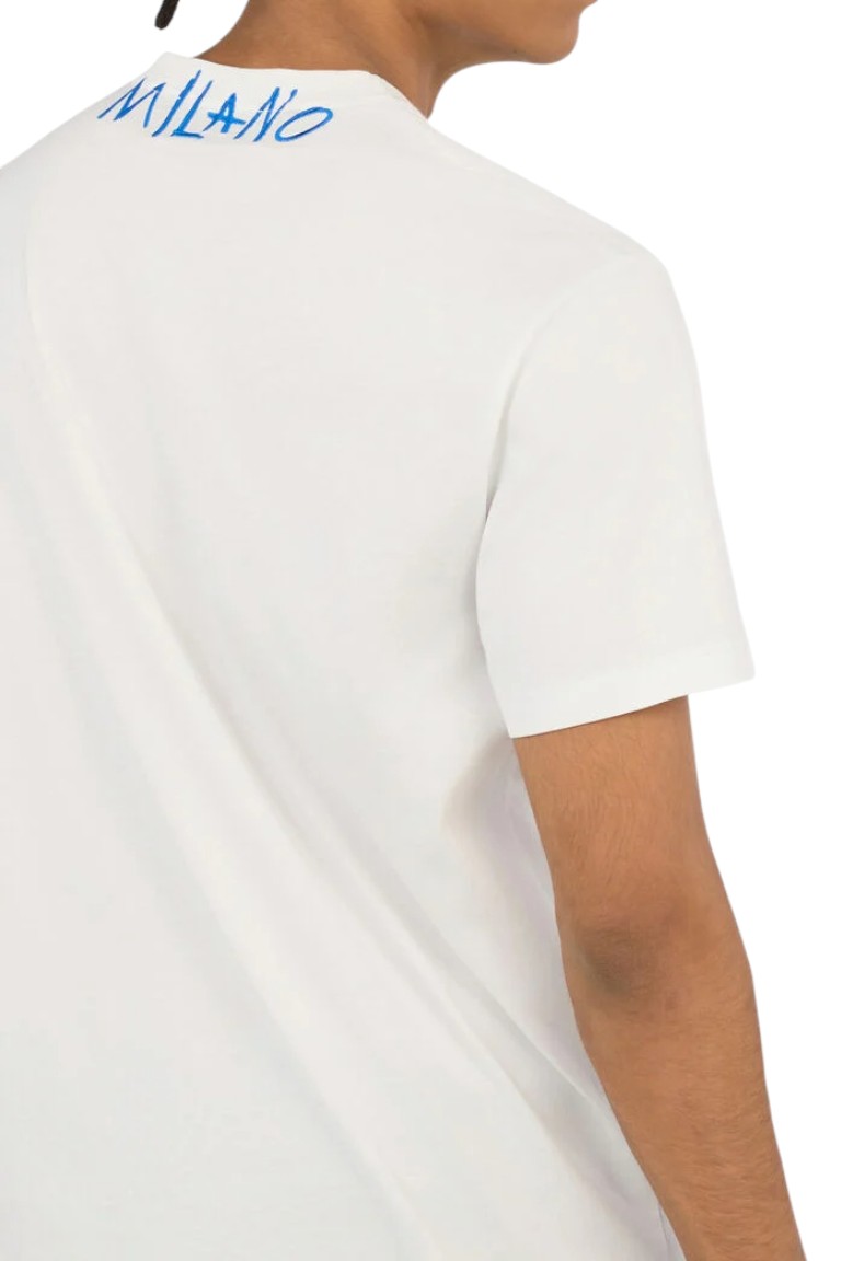 Incarnando lo spirito ribelle di Just Cavalli, questa t-shirt ridefinisce il lusso casual con il suo distintivo logo in stile graffiti. L'audace scritta avvolge ad arte il girocollo e decora la schiena, creando un capo di forte impatto. Realizzata in morbido jersey di cotone, offre un comfort eccezionale e un innegabile tocco urban, perfetta per il guardaroba contemporaneo.