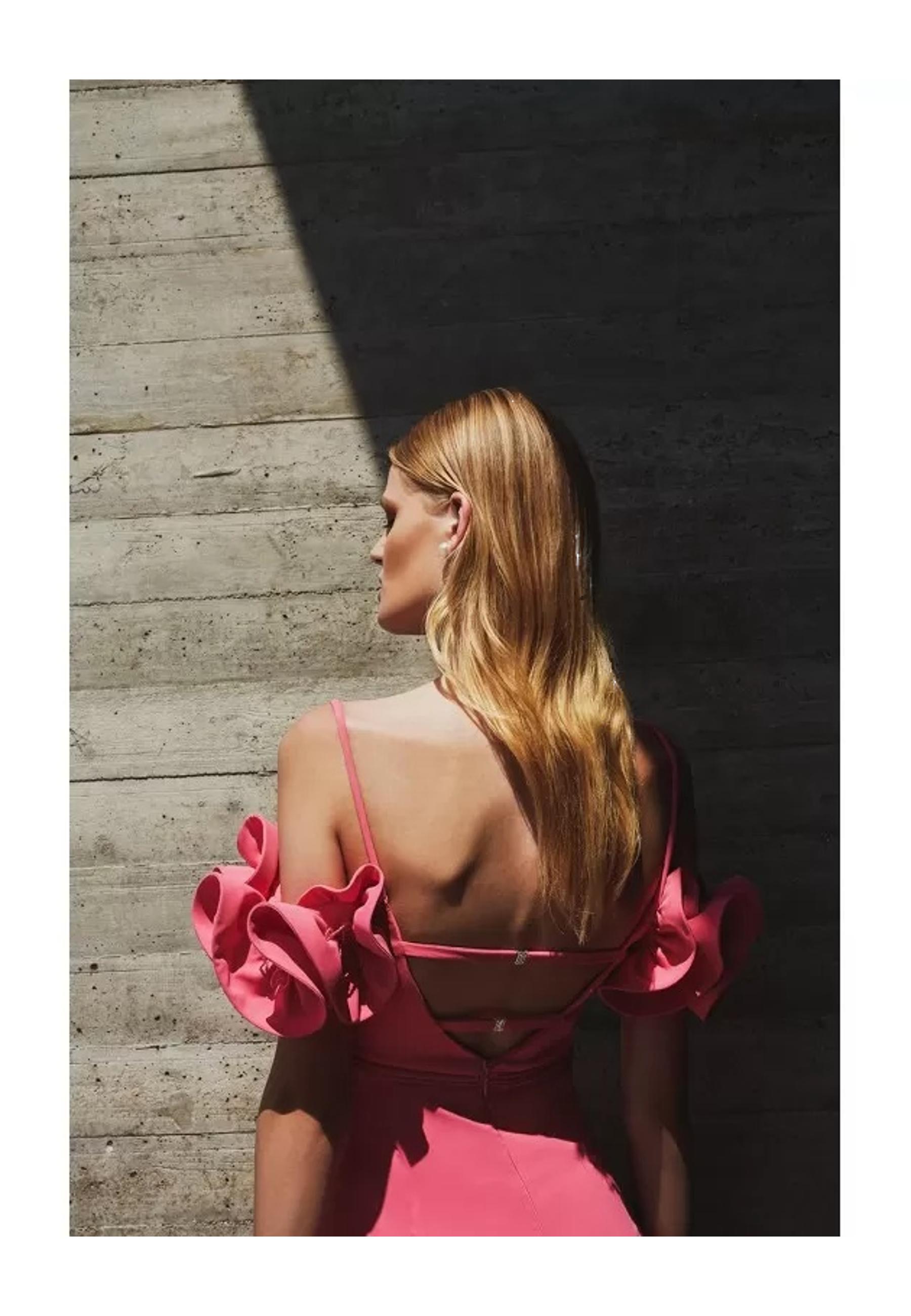 Abito lungo modello sirena con maniche con rouges Maestri MAESTRI | Abiti | 4913PINK