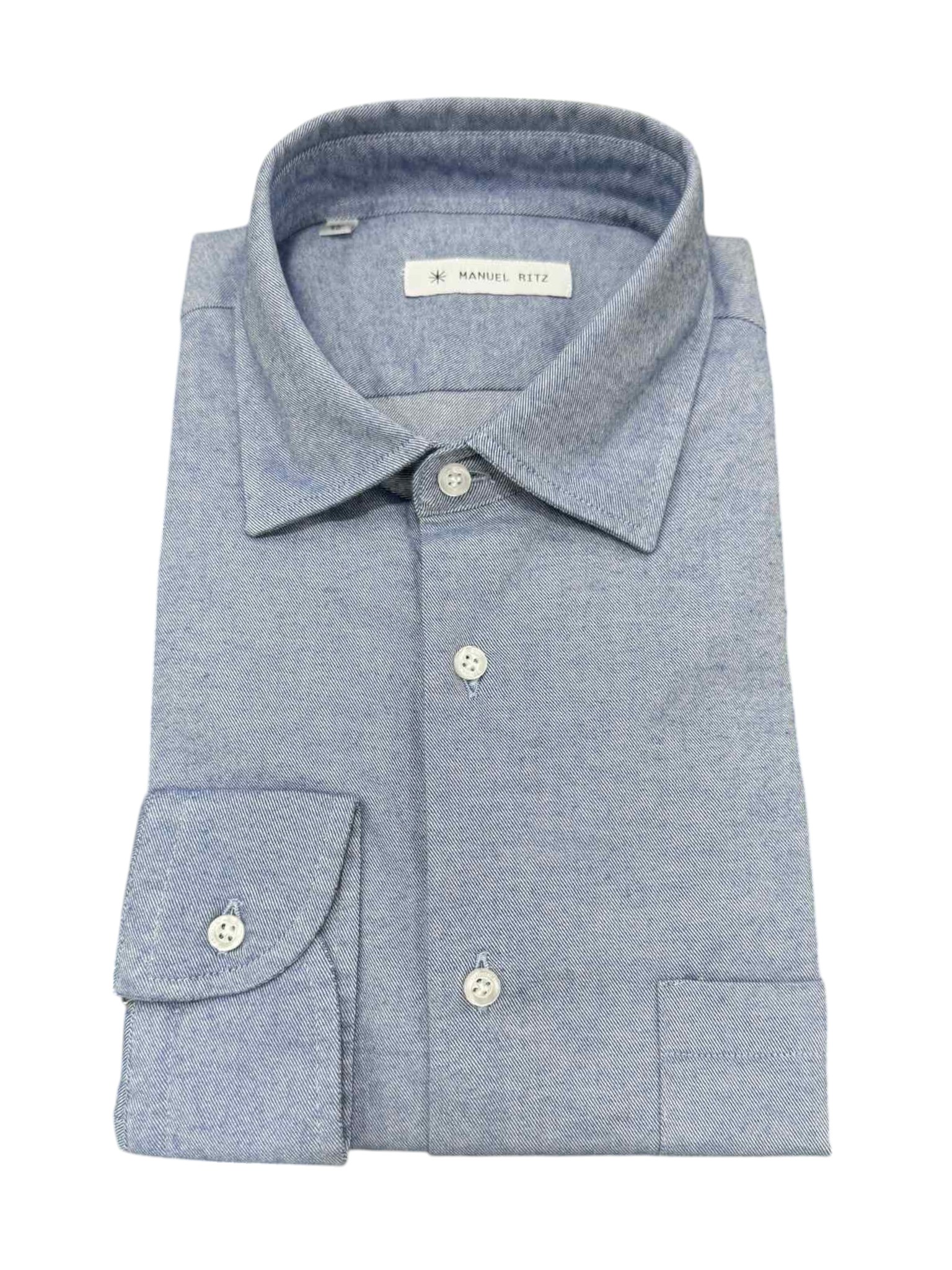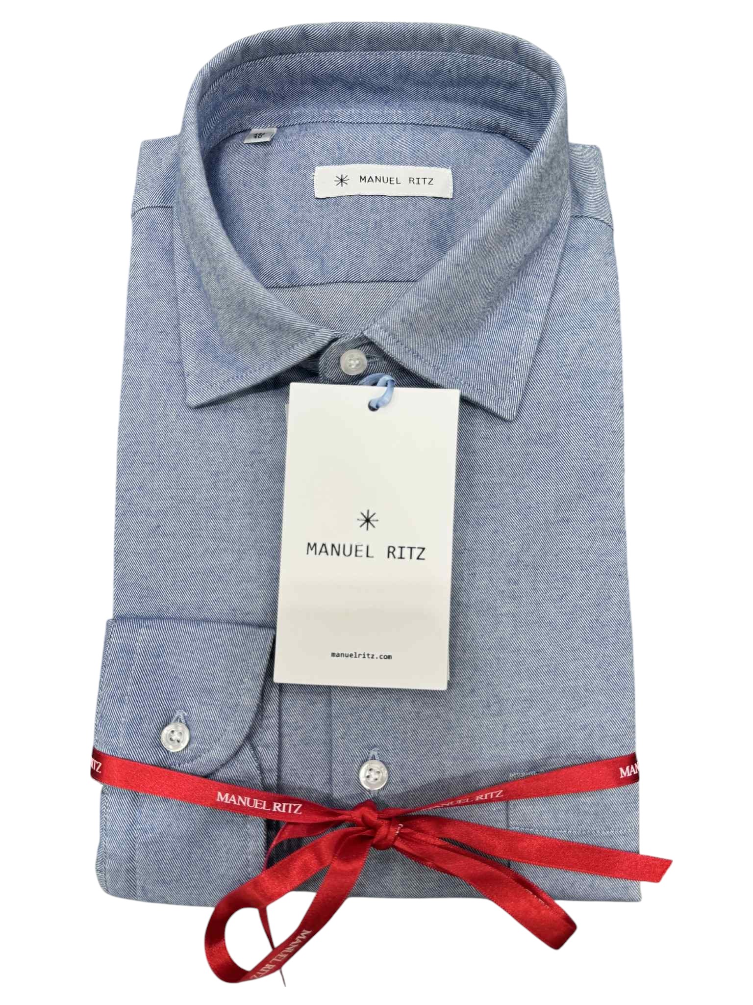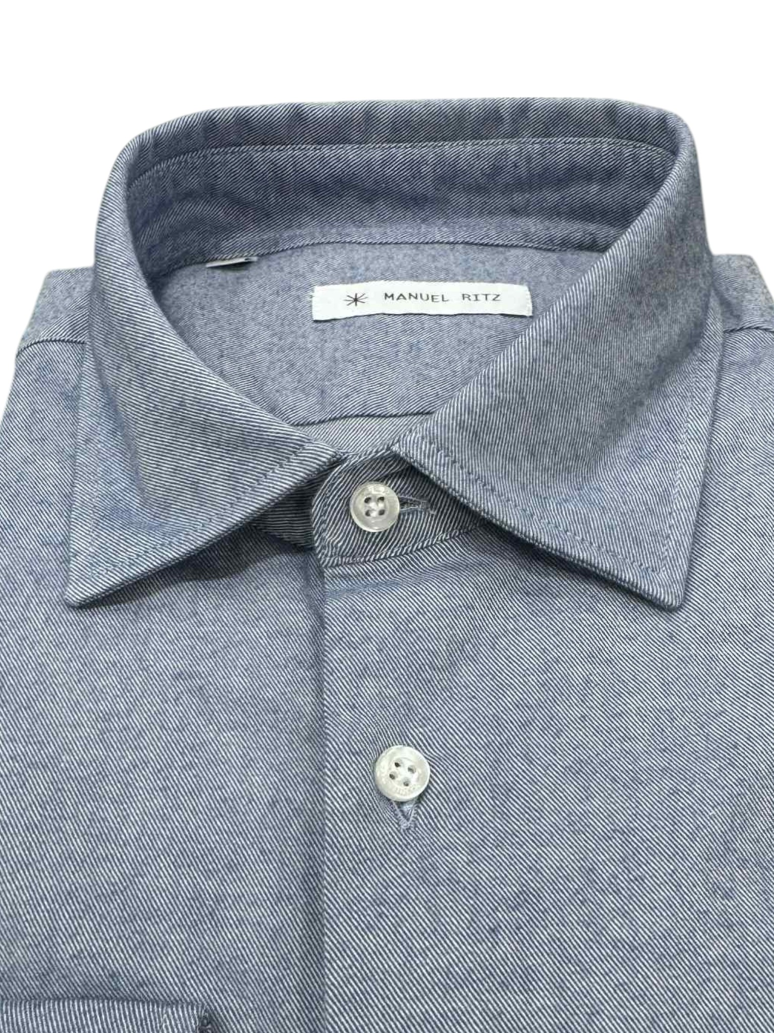 Questa camicia celeste presenta un elegante effetto jeansato, perfetto per un look casual ma ricercato, si distingue per il suo stile unico e contemporaneo. Il collo francese dona un tocco di classe e versatilità, ideale sia per outfit da giorno che serali. Firmata Manuel Ritz, rappresenta la combinazione perfetta tra qualità artigianale e design moderno, pensata per chi vuole distinguersi con stile.