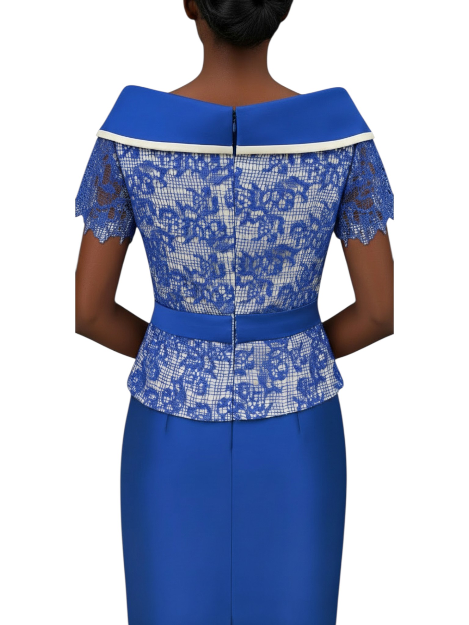 Un abito corto dall’eleganza senza tempo, firmato Musani, che unisce la raffinatezza di un completo all’armonia di un pezzo unico. La parte superiore, con scollo a barca e mezza manica, è realizzata in un pregiato tessuto lavorato e impreziosita da raffinati bottoni gioiello, richiamando l'effetto giacca. La parte inferiore presenta una gonna a tinta unita in tessuto rasato blu royal, dalla linea pulita e moderna. Un abito perfetto per cerimonie e occasioni importanti, pensato per chi cerca stile, femminilità e classe.
