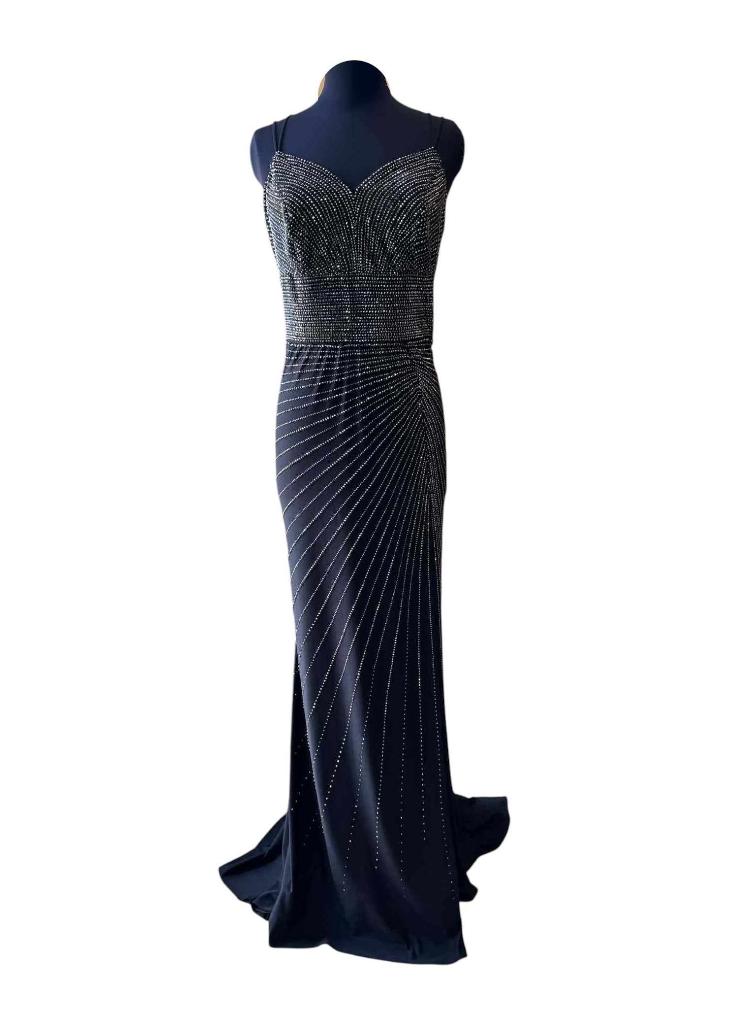 • Abito lungo in tessuto stretch che valorizza la silhouette con eleganza e femminilità. Il design è impreziosito da un raffinato motivo di strass sul davanti e sul retro, che dona luce e carattere al capo. Lo scollo a V mette in risalto il décolleté, mentre la doppia bretella sottile aggiunge un tocco delicato e moderno. Lo spacco frontale completa il look con una nota sensuale e sofisticata, perfetto per occasioni speciali o serate glamour.