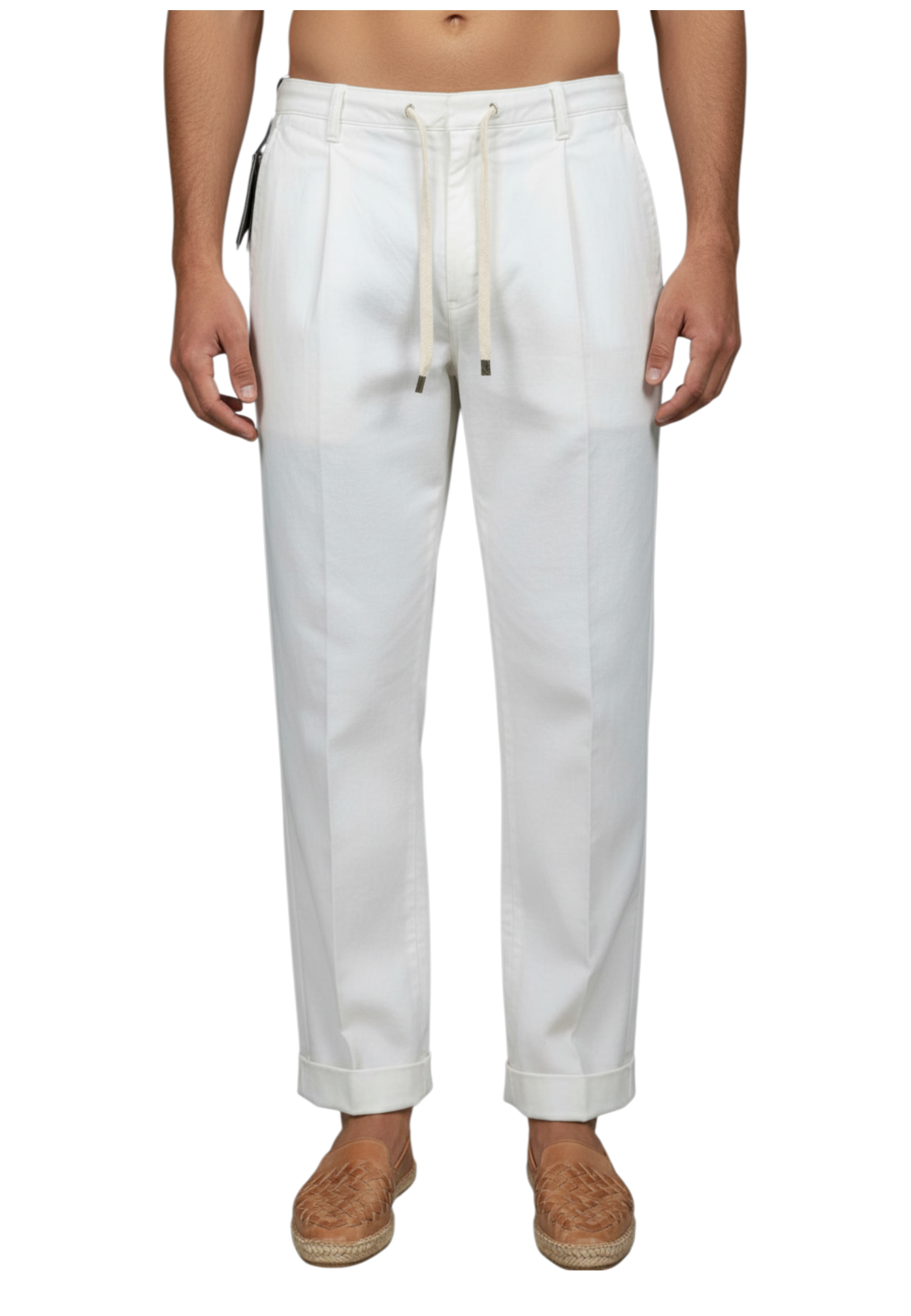 Pantalone L'Uccello di OUTFIT punto milano con tasche america, vestibilita' regular elastico in vita e lacci. Made in Italy.
