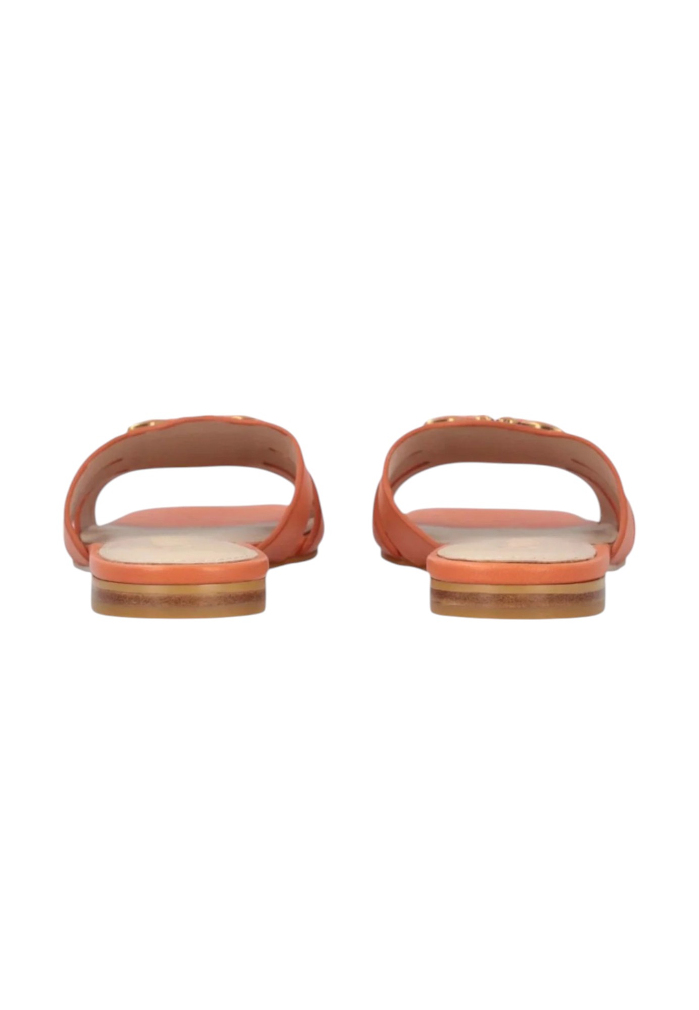 Sandali a ciabattina con tomaia costruita con fascette in morbida e pregiata nappa, personalizzati con accessorio logo uccellini Love Birds con inserto in nappa, nello stesso colore della scarpa. La suola è realizzata in tunit, un materiale sintetico con caratteristiche simili al cuoio, e comprende un piccolo tacco piatto. Le ciabattine sono la calzatura estiva per eccellenza, e sono perfette per qualsiasi occasione, con un vestitino o un paio di pantaloni.