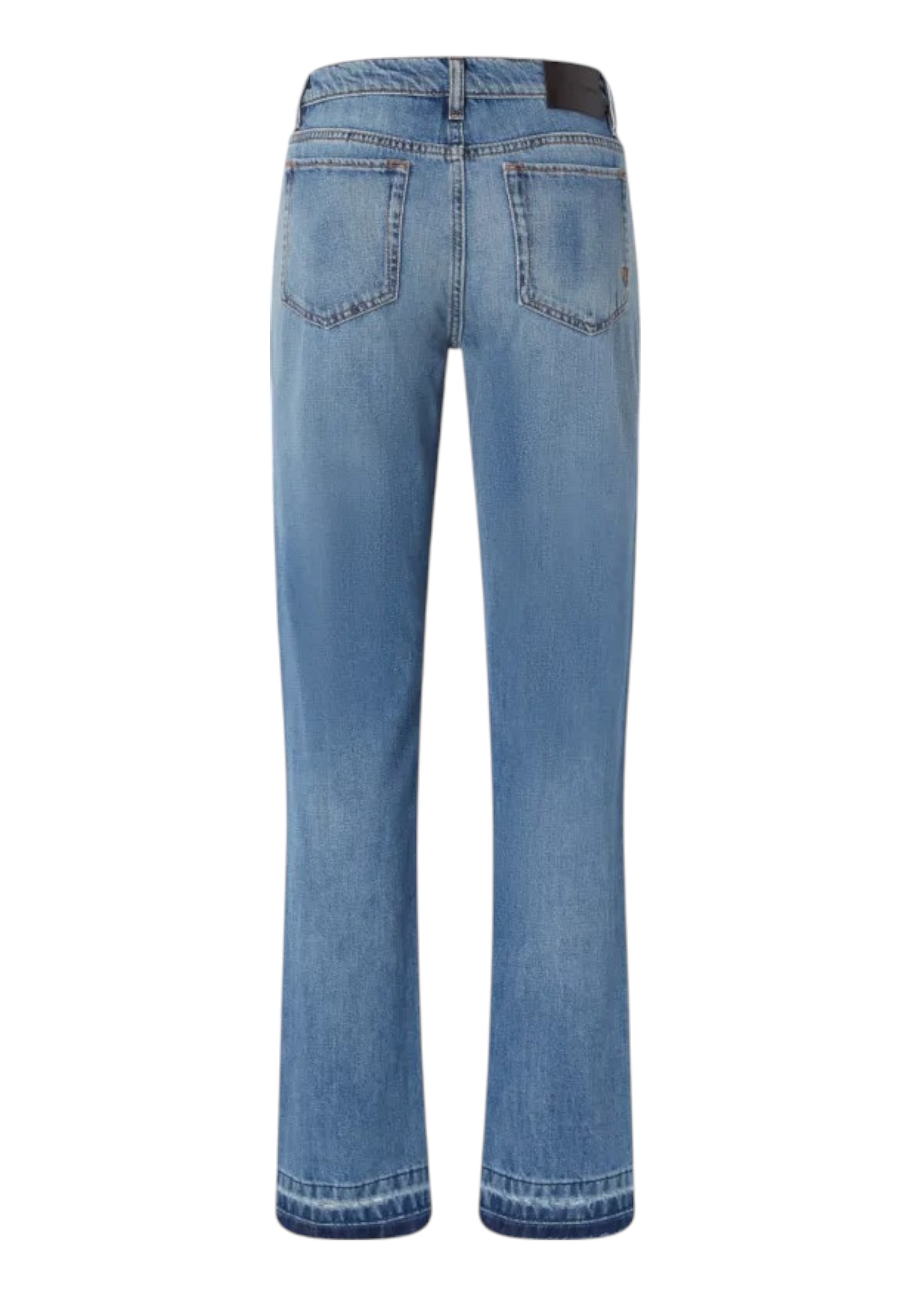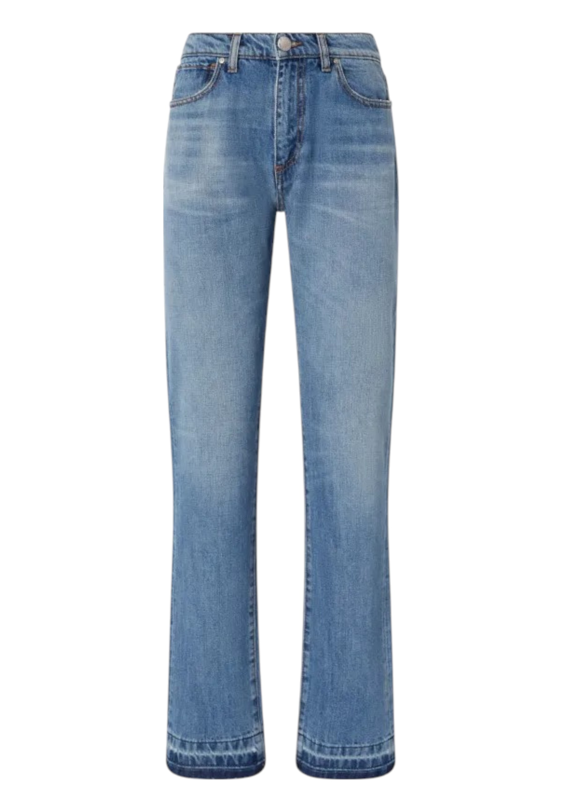 Classici jeans cinque tasche dalla linea dritta in denim di cotone lavaggio vintage che conferisce al capo un aspetto senza tempo, perfetto in ogni occasione e in qualsiasi tipo di abbinamento. I jeans straight-fit sono caratterizzati da vita alta e gamba dalla linea dritta, con orlo trattato a riserva a fondo gamba dal tipico colore più scuro e tagliato a vivo con leggera sfrangiatura. Chiusura con zip e bottone a chiodo in metallo.