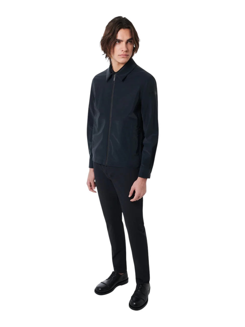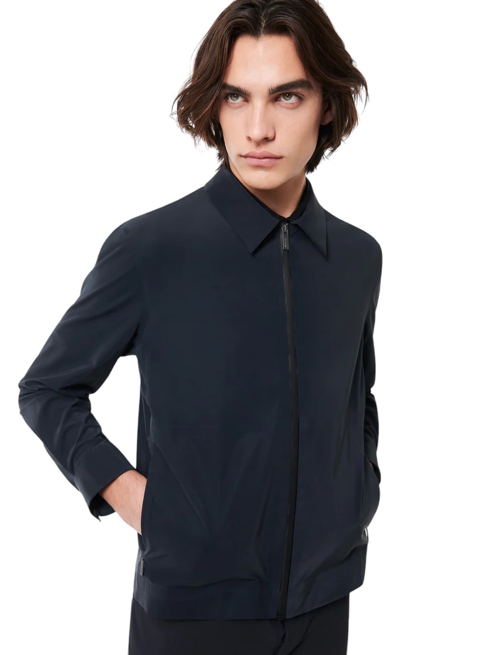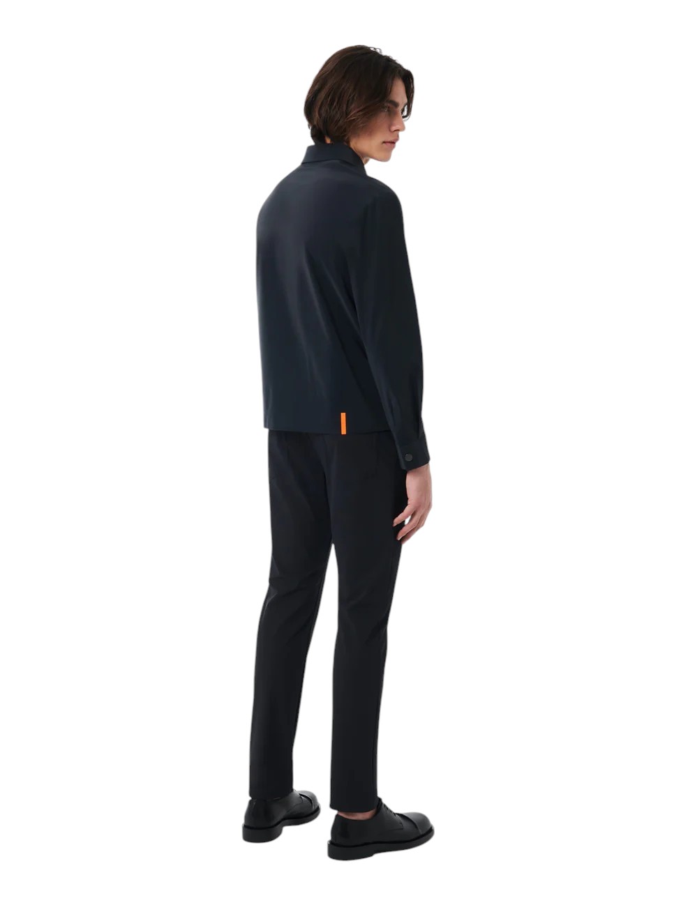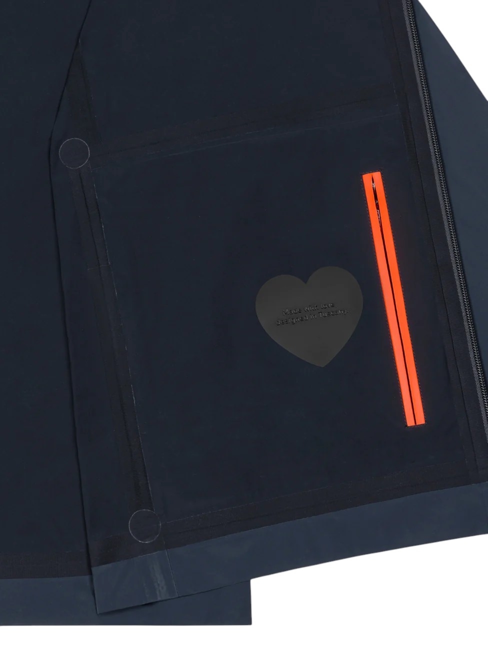 L'ispirazione workwear detta lo stile contemporaneo di questa giacca bomber leggerissima, dal fit regolare. Le linee essenziali sono enfatizzate dalla costruzione a taglio laser e saldature a ultrasuoni, priva di cuciture a vista e rinforzata dalle termonastrature. Il tessuto spalmato di silicone presenta una raffinata luce traslucida, è resistente alla pioggia e al vento e offre una piacevole sensazione al tatto. Il colletto a camicia, la chiusura a zip termonastrata, le tasche laterali invisibili e i bottoni metallici sui polsini ne caratterizzano il design. L'interno presenta il taschino chiuso dalla zip nascosta dal doppio filetto arancione e l'iconica tag a cuore "Made with love, designed in Tuscany". L'emblematico filetto arancione sul fondo e il logo a microiniezione nero sulla manica sinistra impreziosiscono il capo con ulteriori note di stile esclusivo.