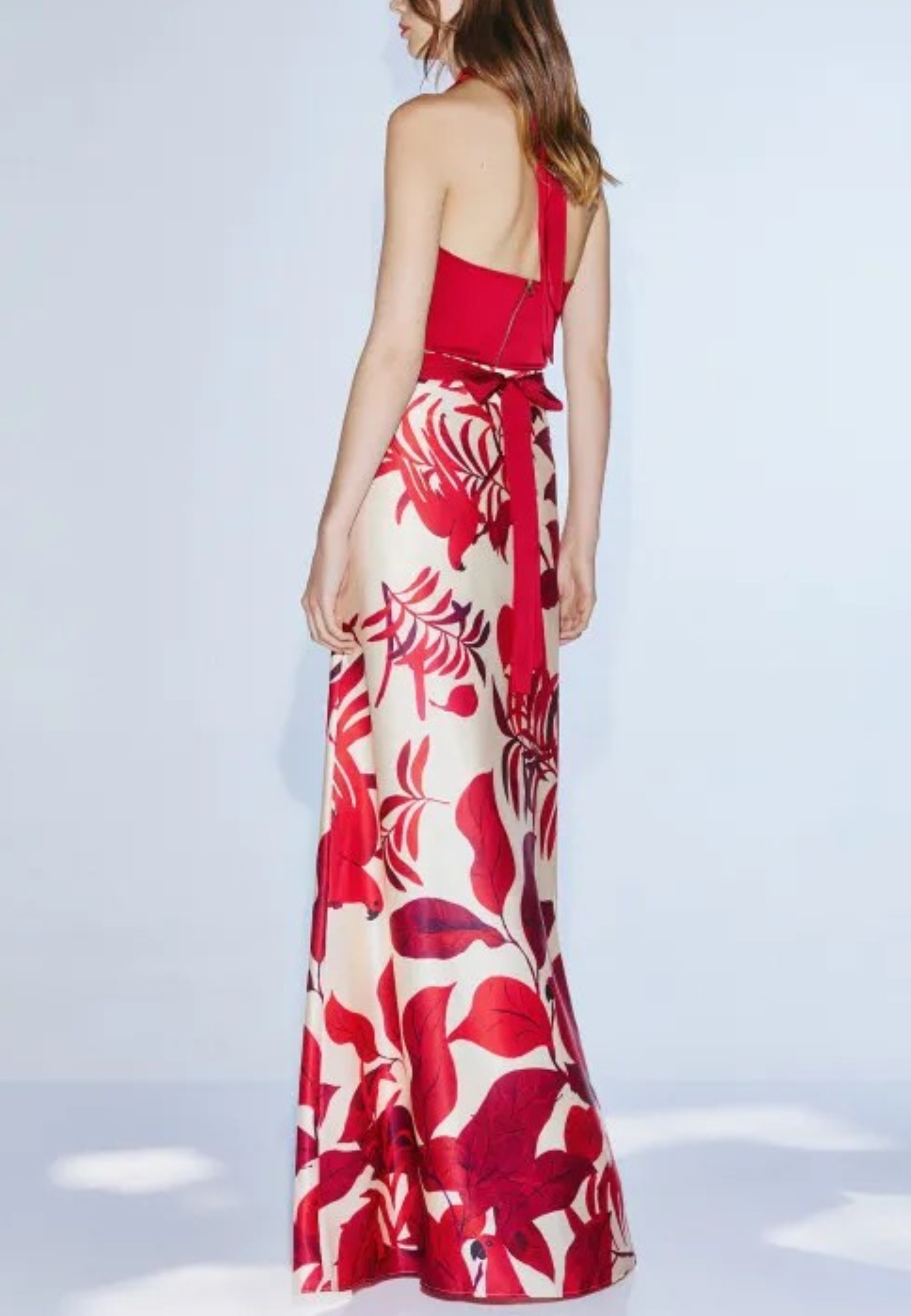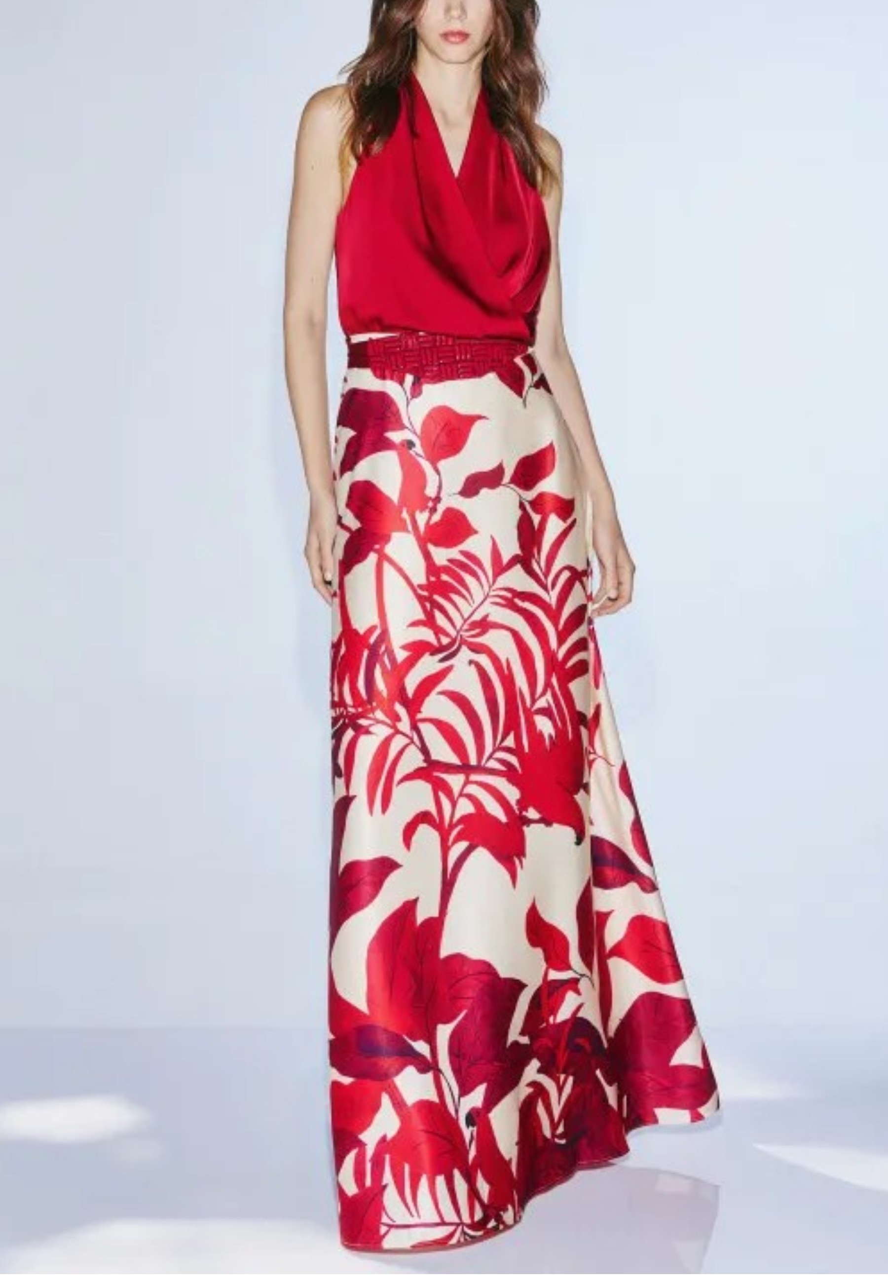 Completo donna gonna e top Twins Fantasy nei colori bianco e rosso vino, elegante e di grande impatto. Il set è composto da un top morbido interamente rosso, con allaccio al collo e spalle scoperte, che valorizza la figura con un tocco femminile e sofisticato.