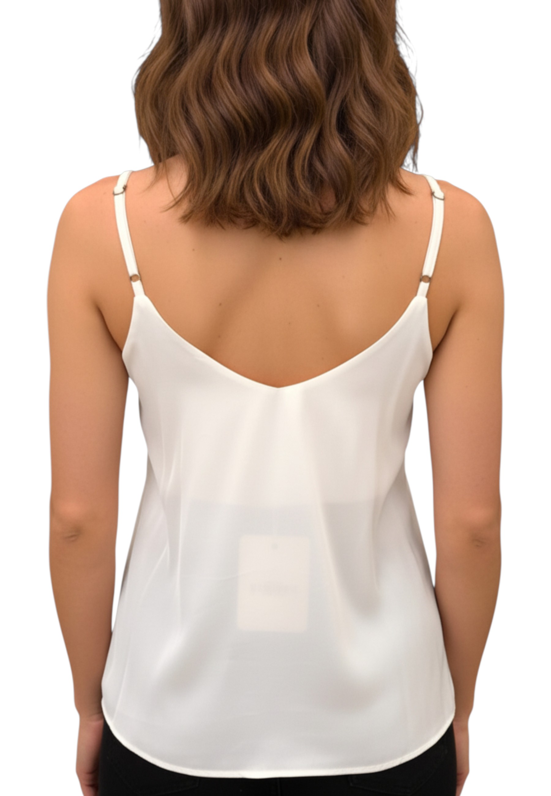 Top sottogiacca in raso con bretelle regolabili e scollo a V.