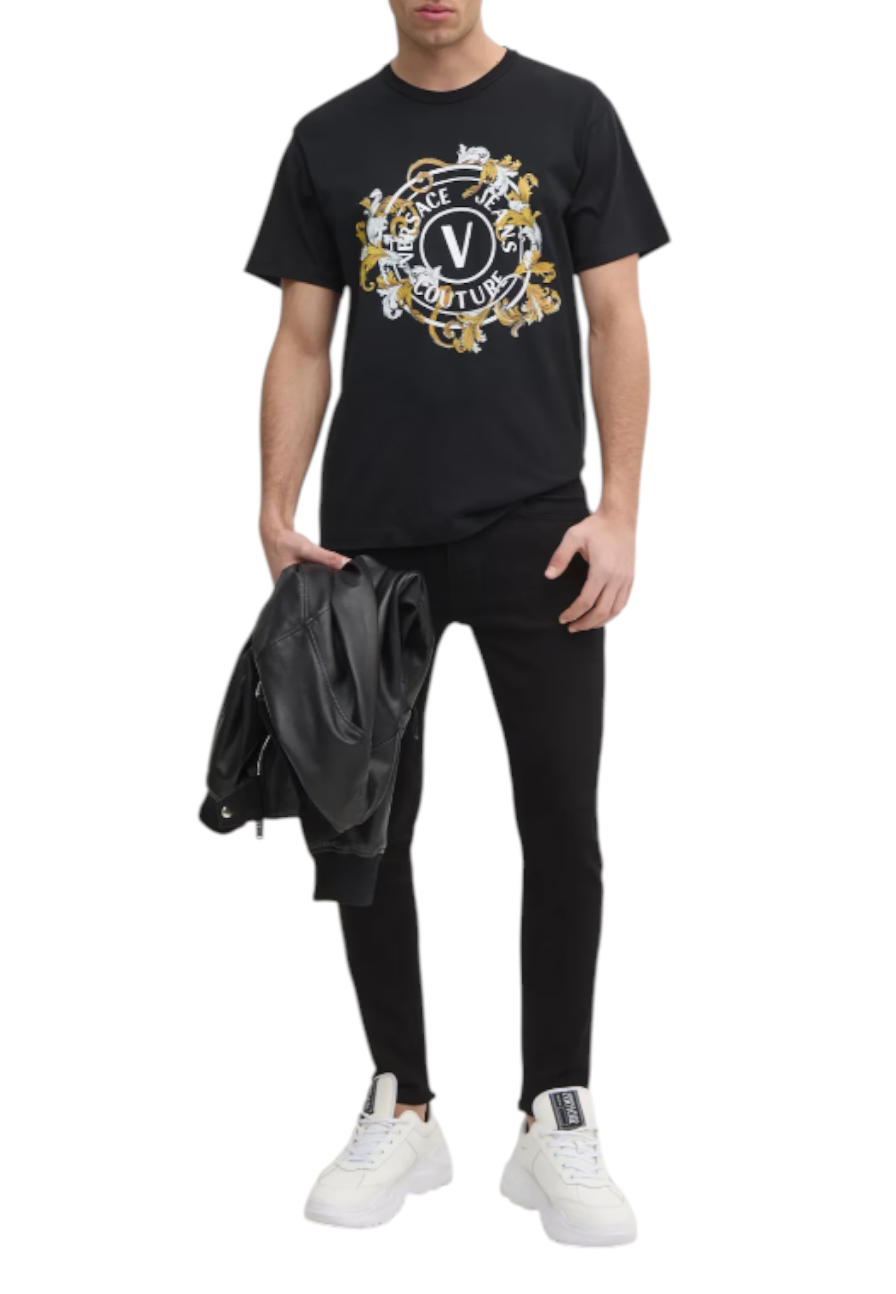 I jeans della collezione Versace Jeans Couture rappresentano l'essenza dello stile contemporaneo e raffinato del brand. Realizzati in denim di cotone di alta qualità, si distinguono per il taglio skinny che valorizza la silhouette e per la vita bassa, dettaglio che aggiunge un tocco moderno e audace. La chiusura con bottone e cerniera assicura una vestibilità confortevole e pratica, mentre le tasche completano il design con un accento elegante e funzionale. Perfetti per chi cerca un capo versatile e di tendenza, da indossare con disinvoltura in ogni occasione.