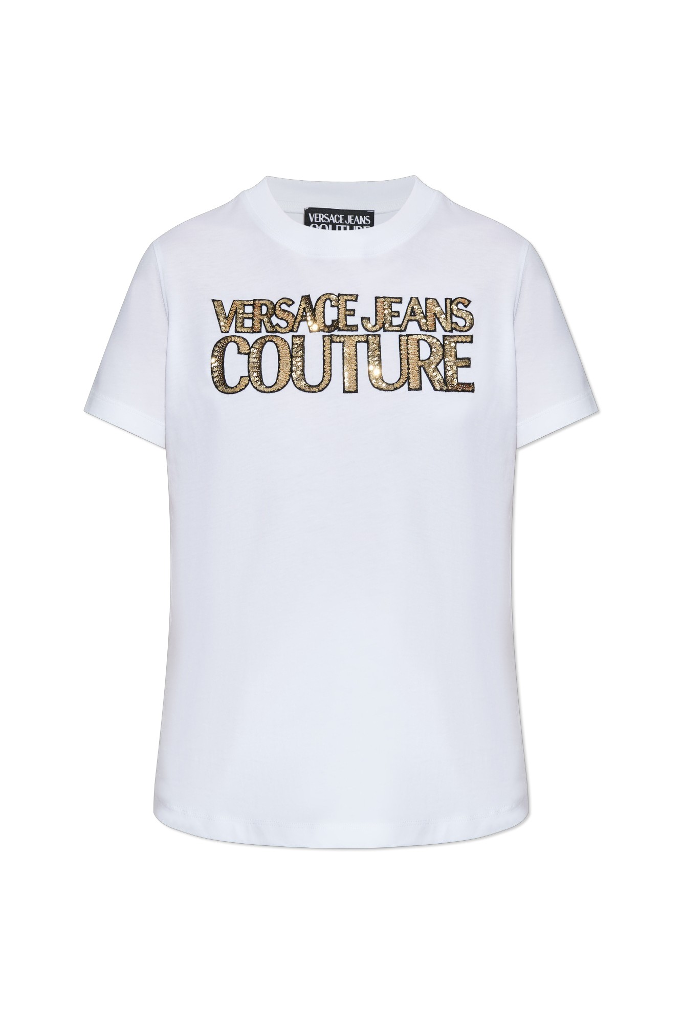 T-shirt con cristalli Institutional Logo VERSACE JEANS COUTURE | T-shirt | 78HAHE02 CJ00EG03
