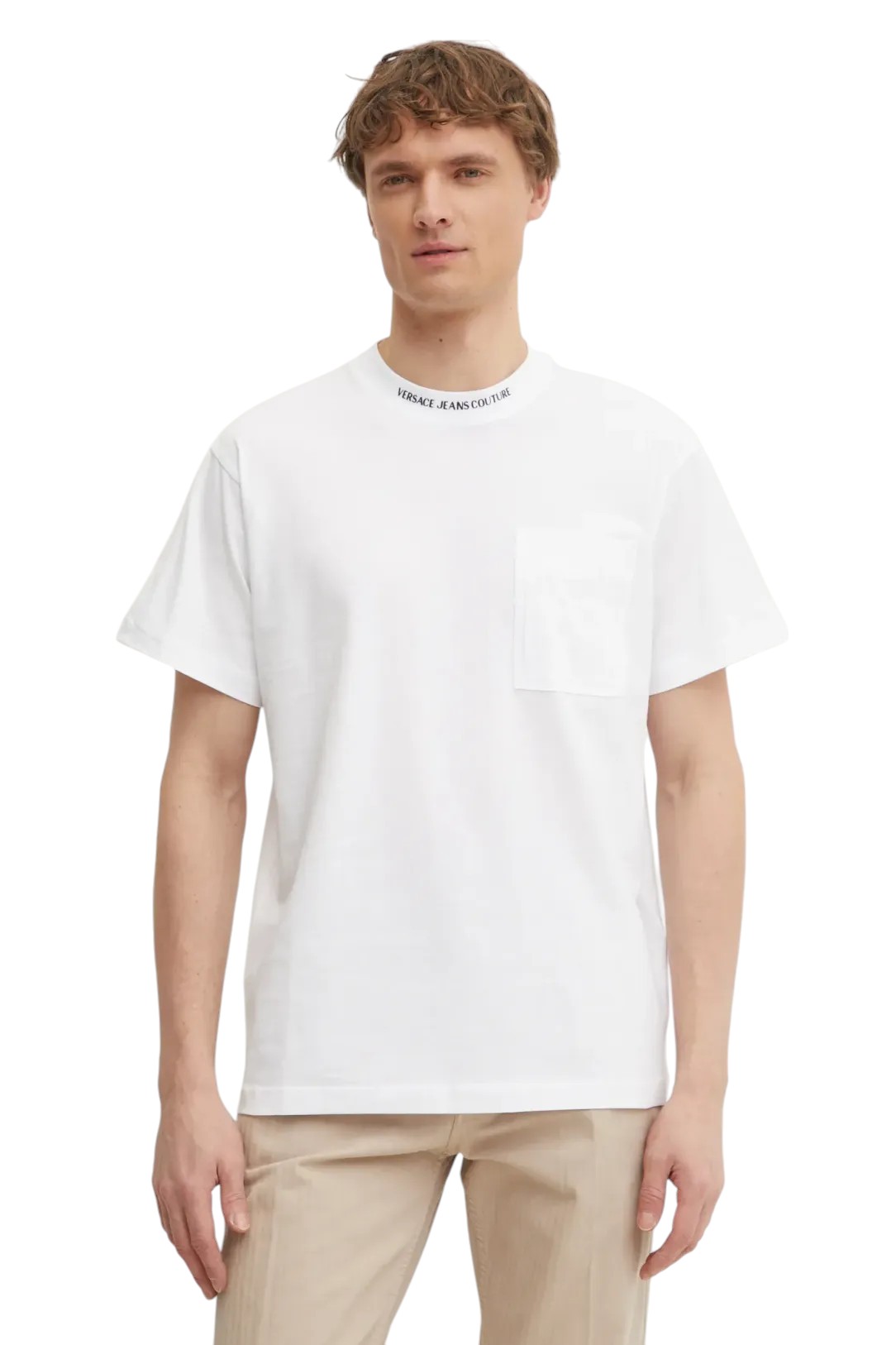 Versace Jeans Couture T-shirt realizzata in maglia fine elasticizzata. Il modello realizzato in un tessuto di cotone estremamente confortevole.
