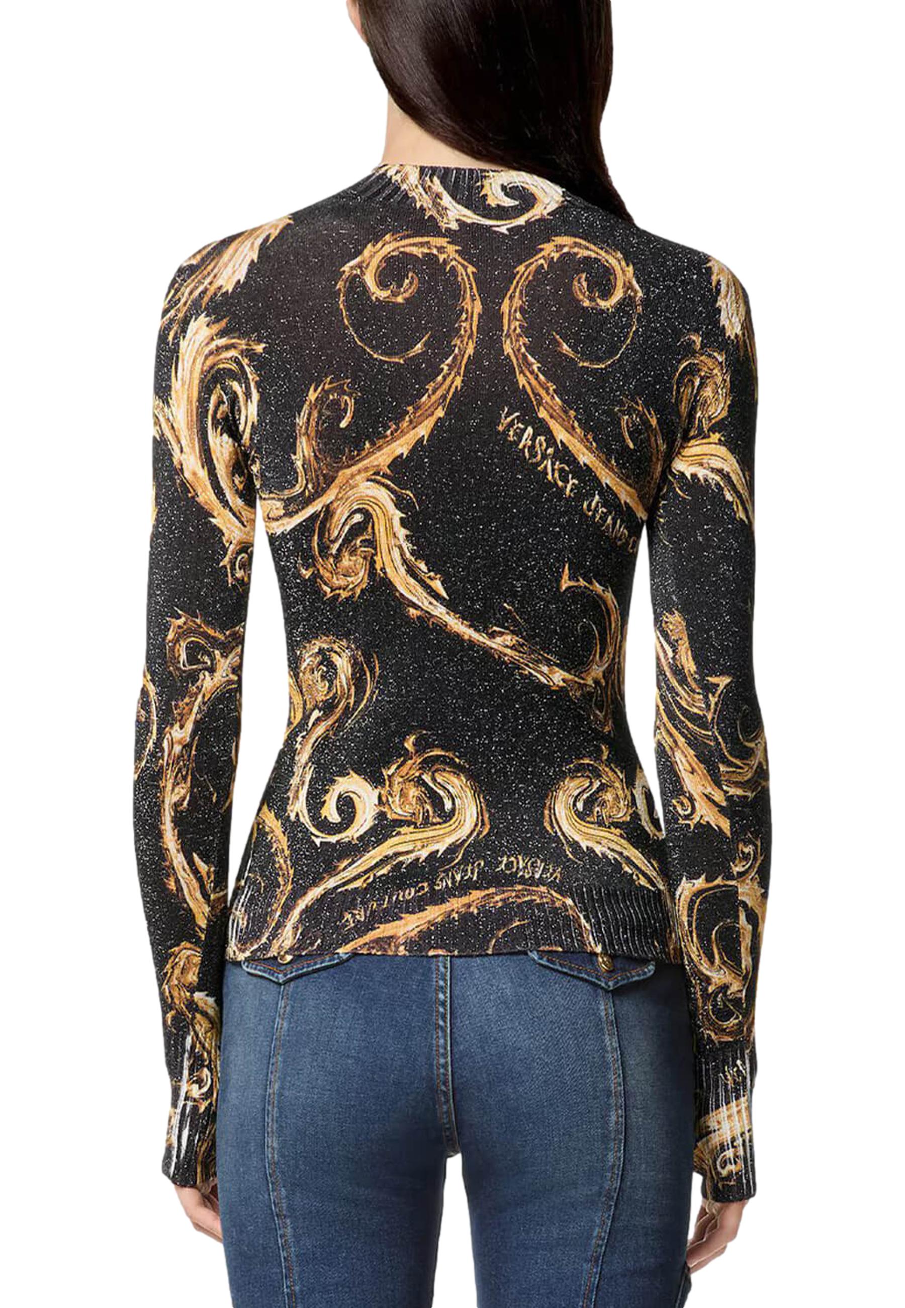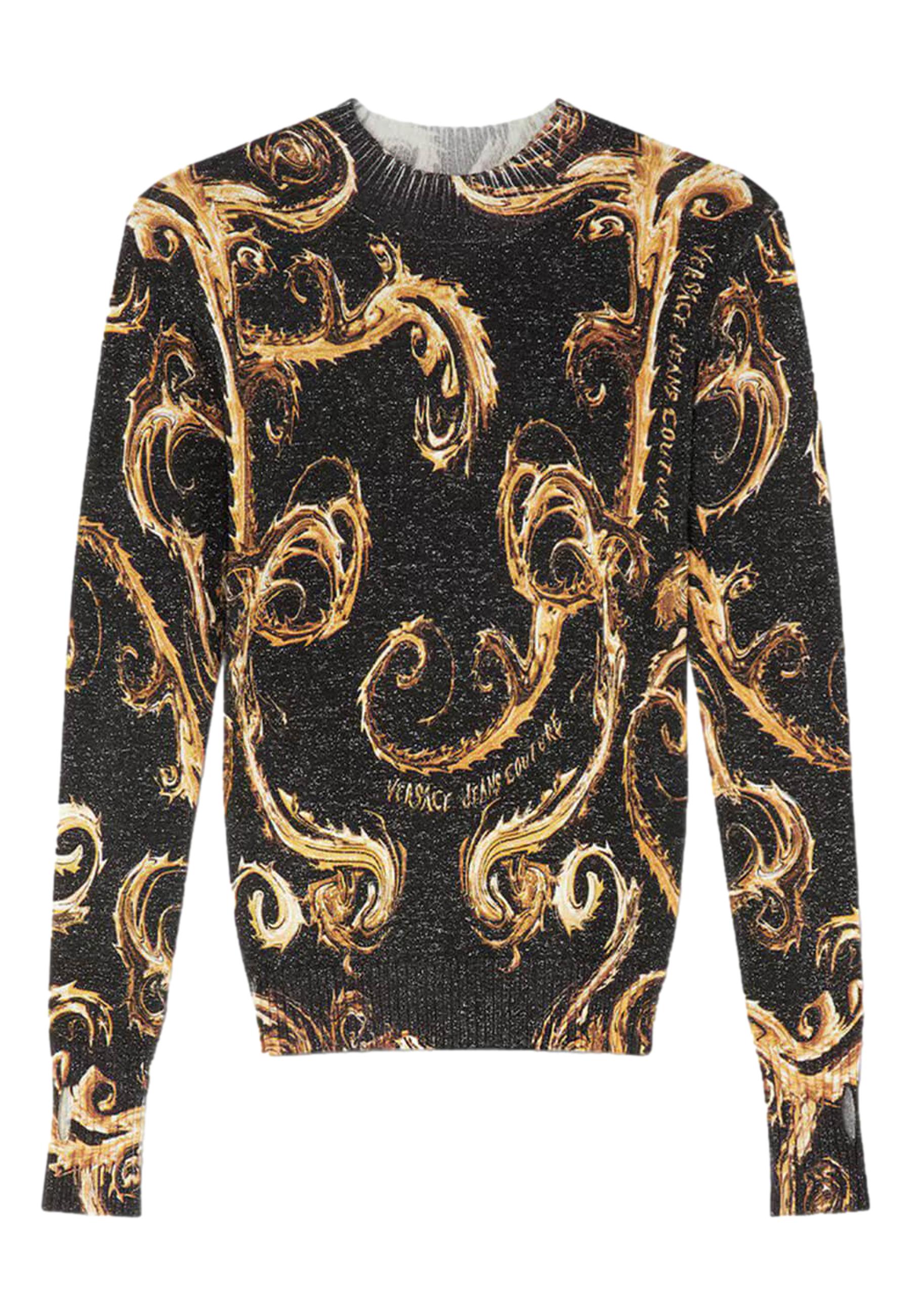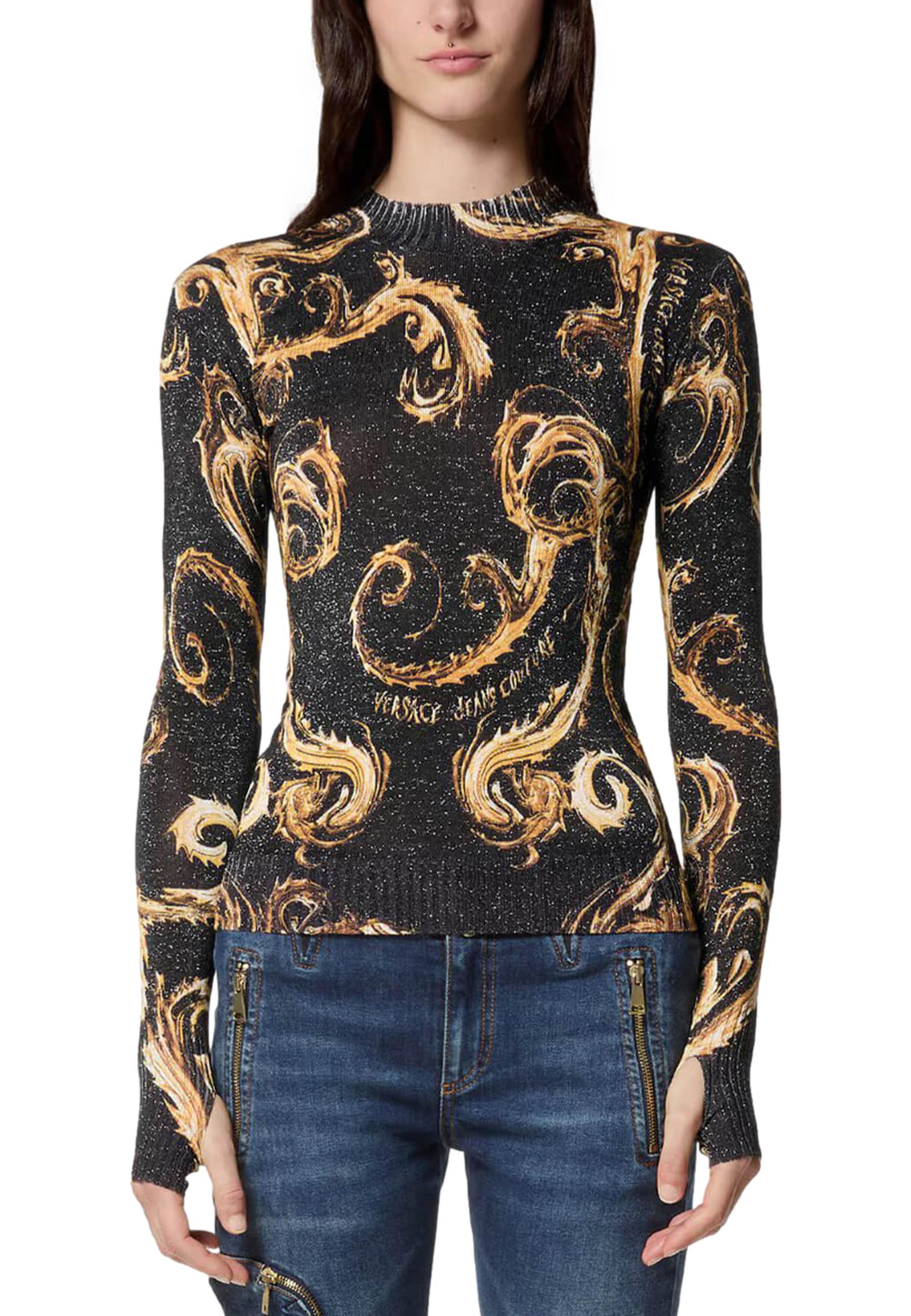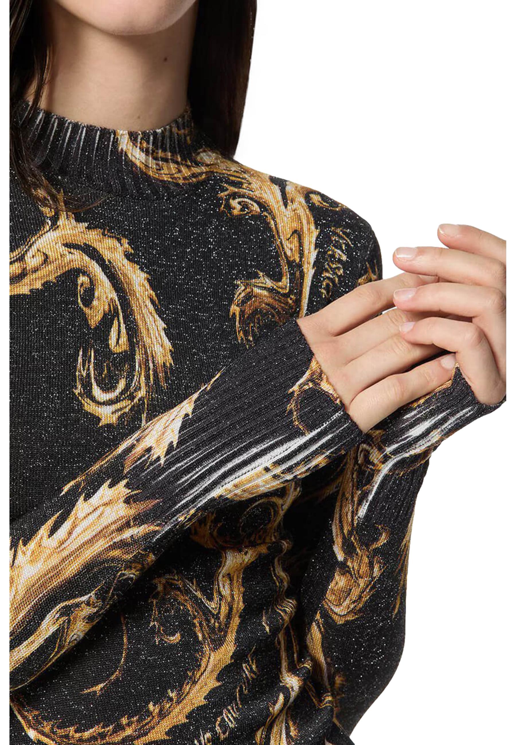 La T-shirt in maglia a maniche lunghe è caratterizzata da motivi Barocco con bordi spinati all-over in lurex.